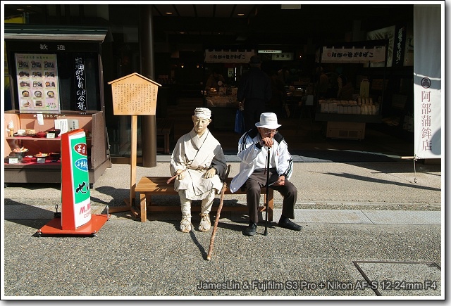 入口前兩側都是商家,我家園長突然叫住我,叫我看這一個有趣的畫面