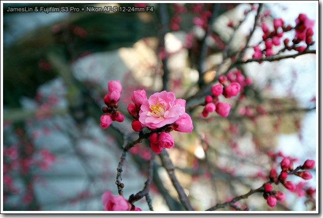 入口前剛有好一株八重櫻怒放,儘管天色反差過大,不過還是硬把他拍下來!