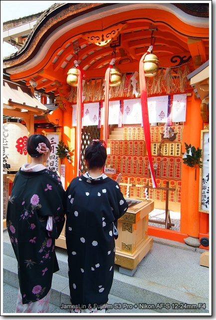 恰巧看到兩位穿著傳統和服的背影美女來參拜,趕緊相機抓起來,拍一張!