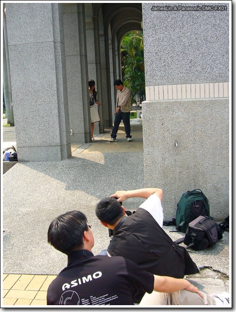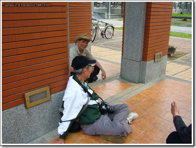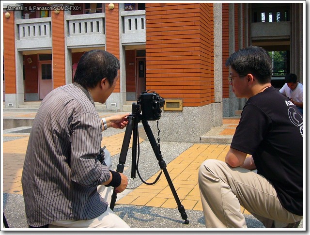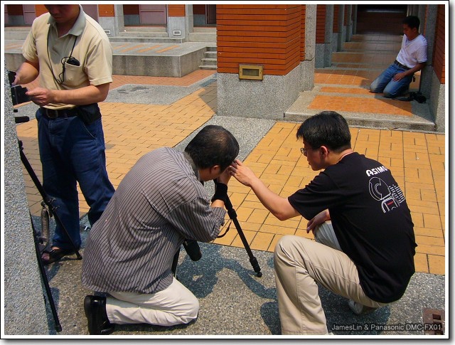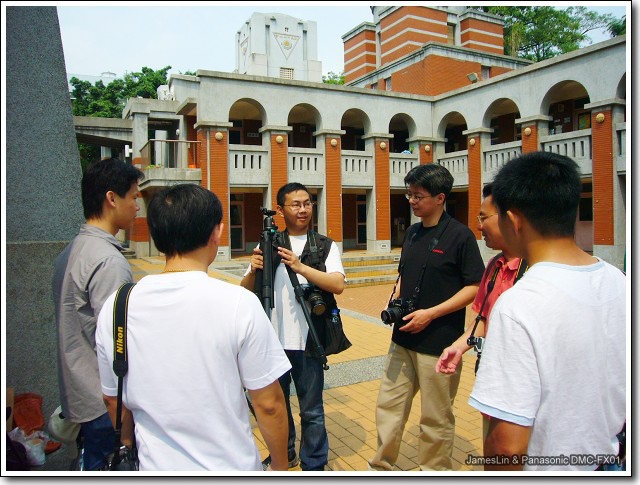 中場休息,我們幾個同學湊在一起討論"腳架",照片中那位同學手上拿的便是我的腳架Velbon 640......