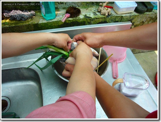 專業的杜立德大師用刀如神,所以這個“解剖”桶仔雞的工作自然是落到他身上了~哈哈!