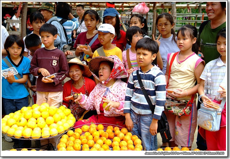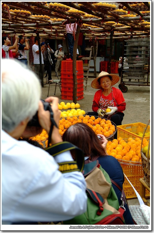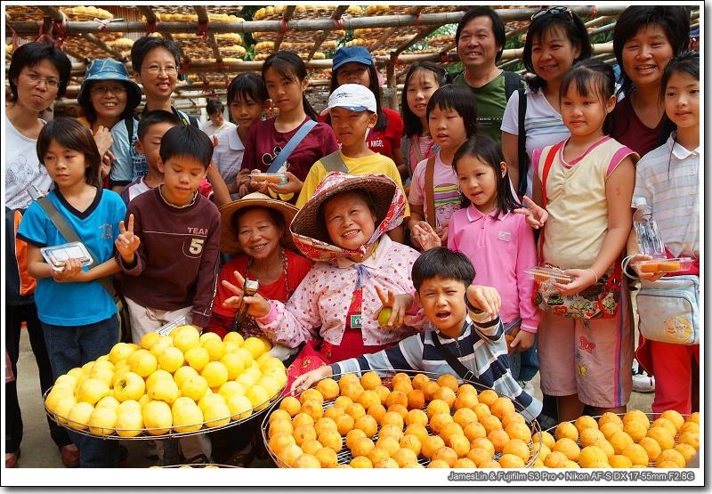 #34 中間那位就是網路上最紅,大家最耳熟能詳的柿餅婆婆了,原來她剛剛招待一團小朋友,現在才帶他們來拍合照,只聽到柿餅婆婆很熱情地招呼著:「來喔!大家來拍合照!」