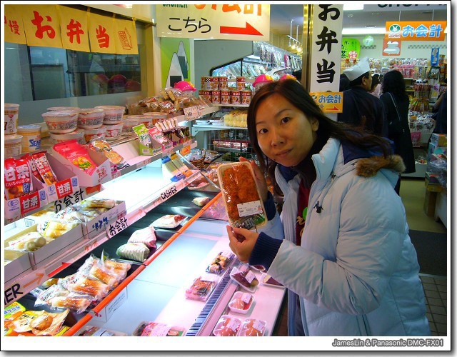 這個就是位於日高的一個休息站,裡頭有一個還蠻傳統的生鮮超市,我們這些台灣客是看到什麼東西都新奇,每一樣都給他拿起來摸一摸,看一看,過足觀光的癮!