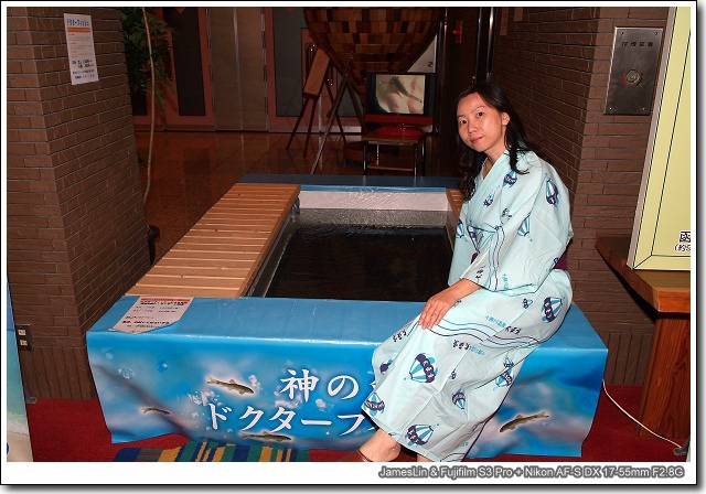 只要把手或腳伸進溫泉池裡,小魚就會靠過來幫你「去角質」,真有趣,不過這項服務~要錢!