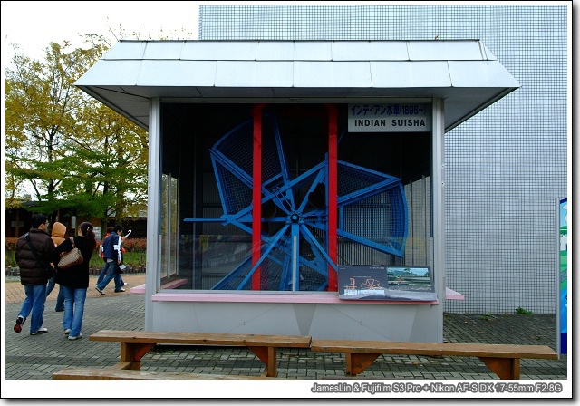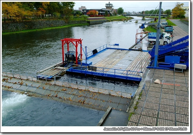這就是大名鼎鼎的印第安水車了...利用鮭魚迴游的習性,在千歲川上築起一道柵欄,只留水車一個入口,鮭魚就會朝水車這裡遊來,然後被水車葉片給絞上來...