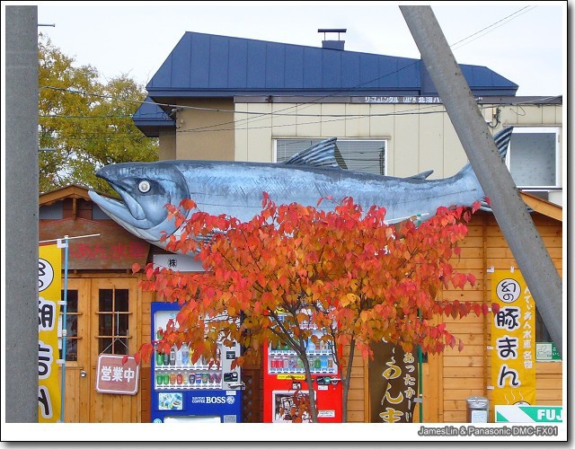 回到停車場,聽說這裡有個鮭魚的特產可以品嚐一下...