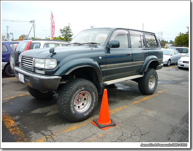 嘿!在停車場看到一台舉昇的老Toyota Land Cruiser...
