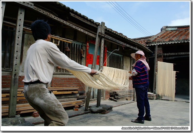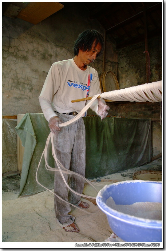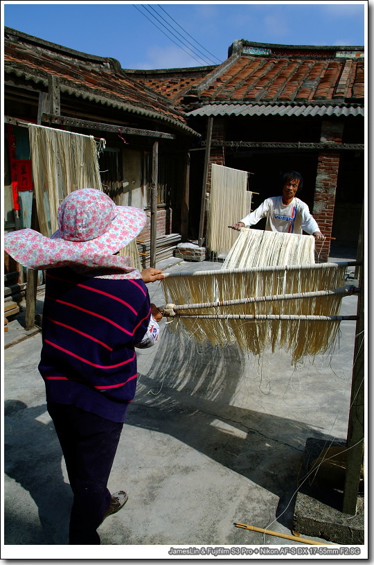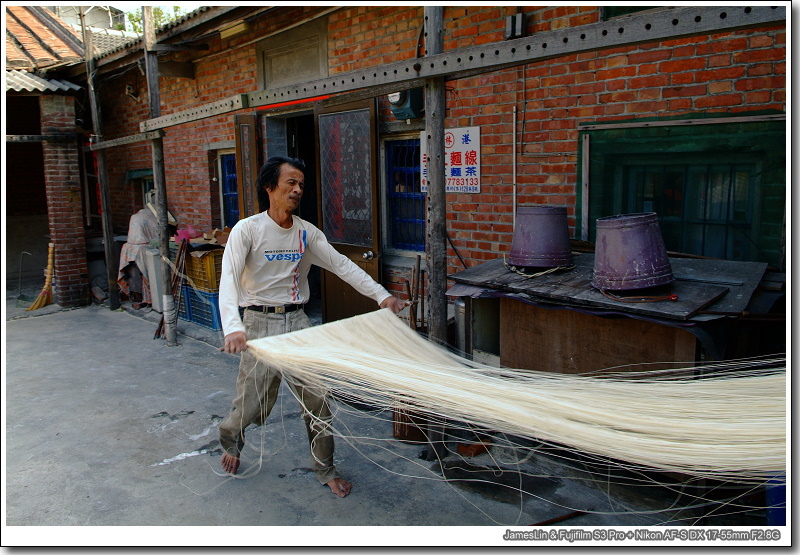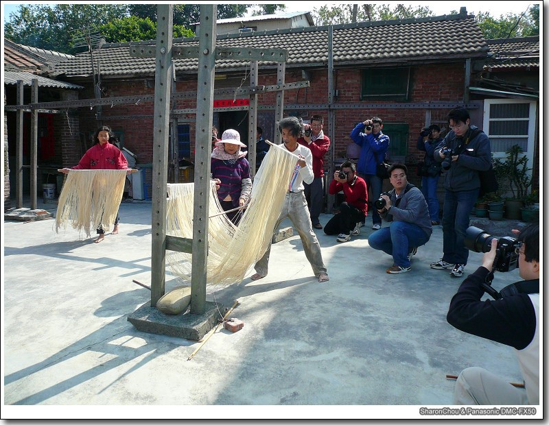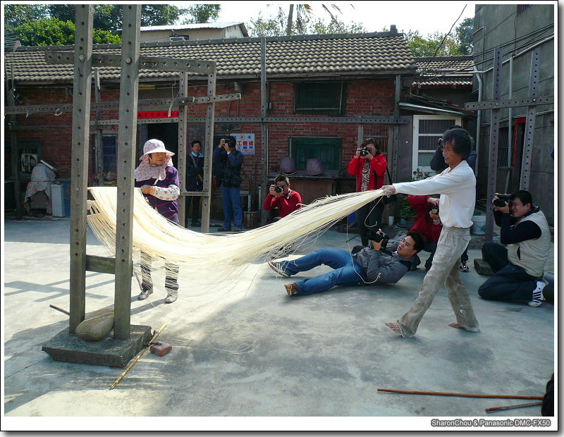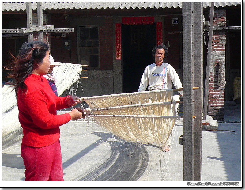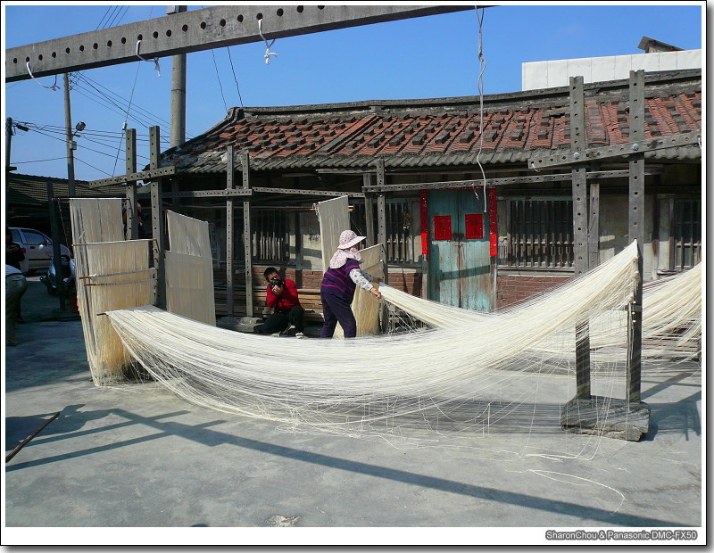 曬麵線的老闆跟我們約好十點半開始做,沒想到他還真的一直等待我們