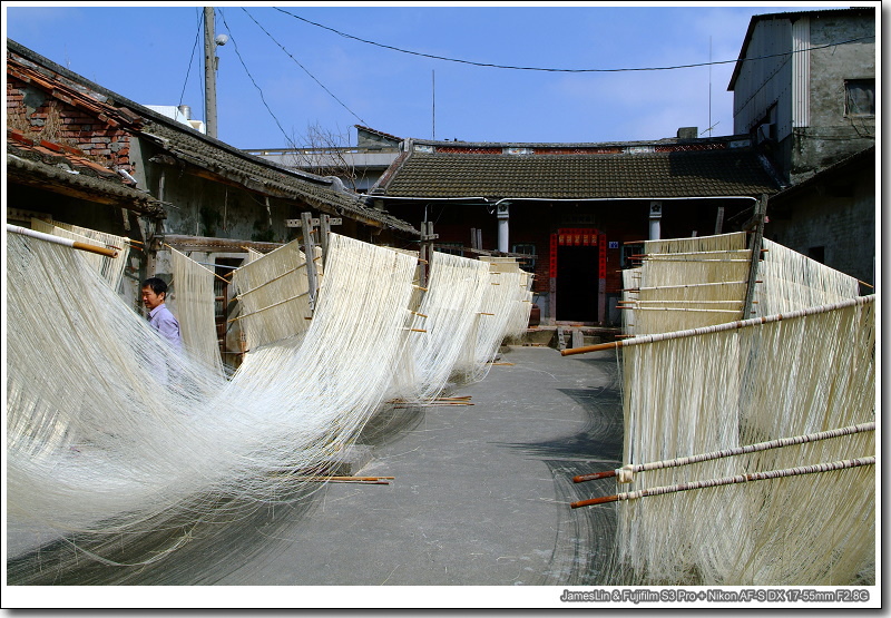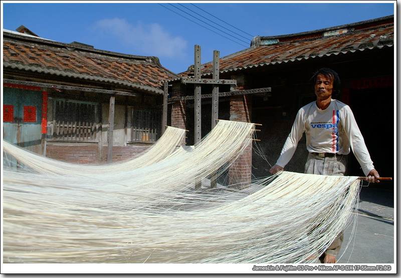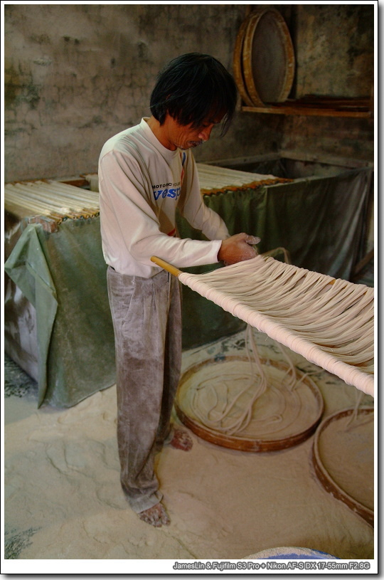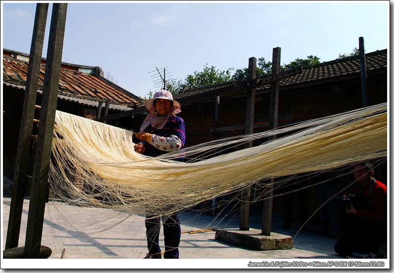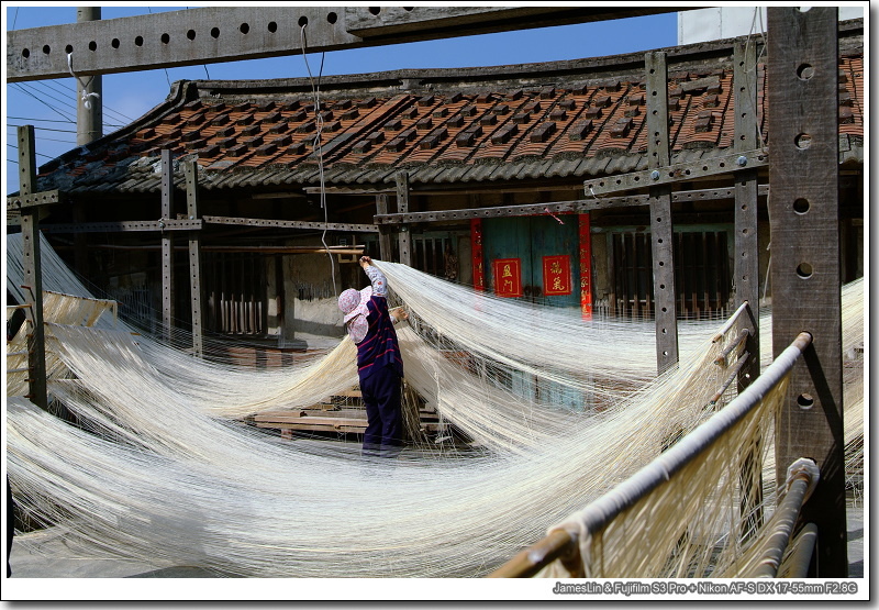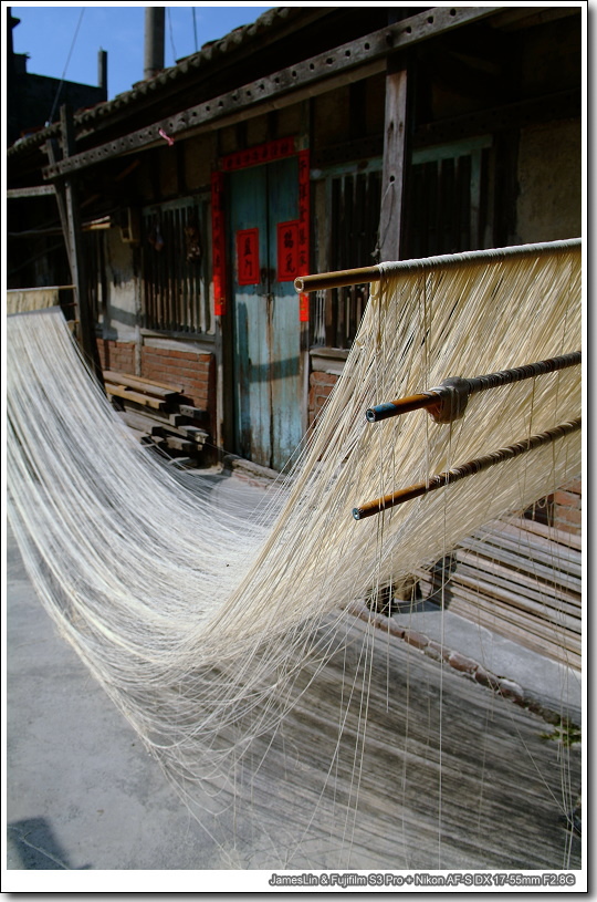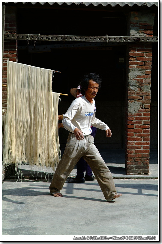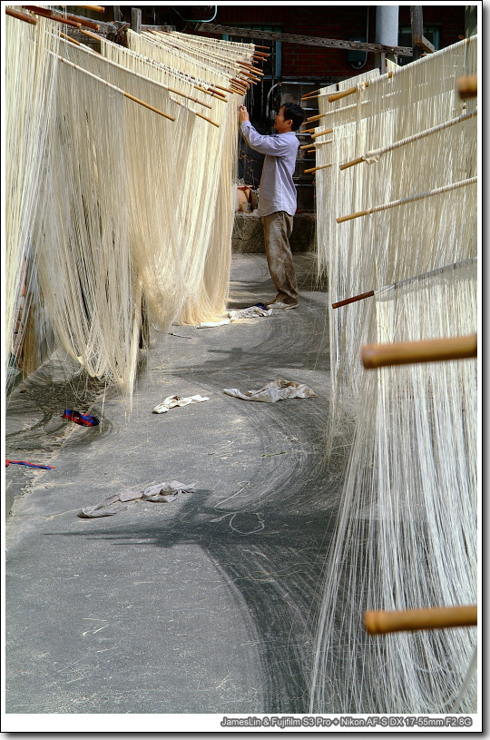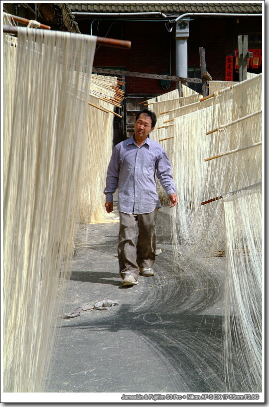 曬麵線的老闆跟我們約好十點半開始做,沒想到他還真的一直等待我們