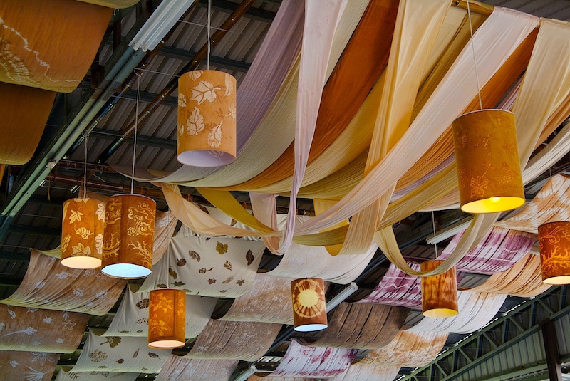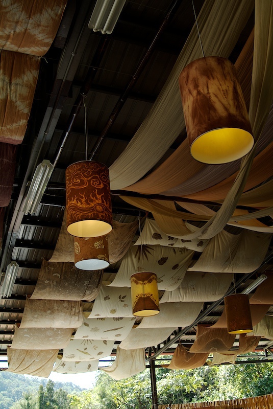 這裡有很漂亮的染布作品,掛滿整個二樓空間呢!