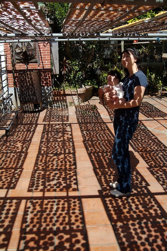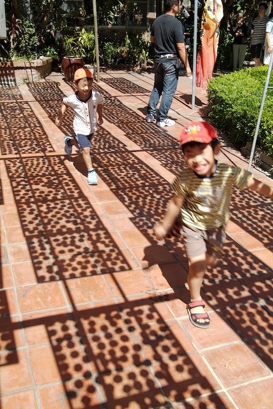 小朋友把架子倒影當做遊戲場,在晒場盡情嬉戲~