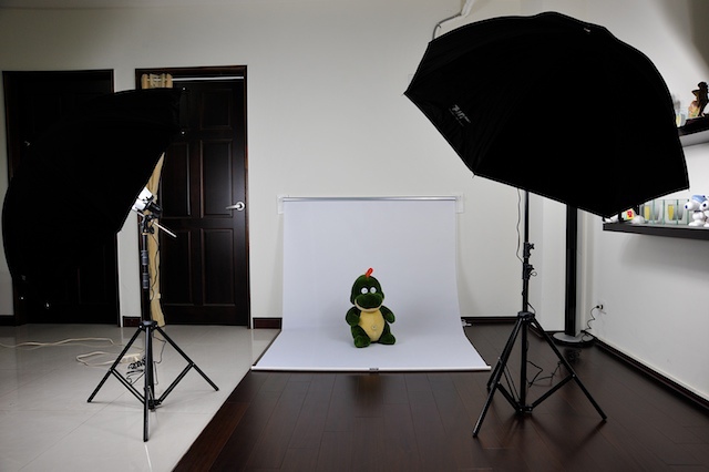 我把客廳後方的一個角落佈置成攝影棚,還好這些東西都是可以搬動的,並不會影響日常作息,除了那個白色背景紙捲軸是固定釘在牆上之外,其他的都可以拆開分解收藏...