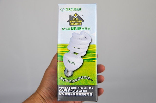 光源經網路爬文後我向長庚生技訂購了這種23W全光譜標準色溫省電燈泡,聽說演色性佳,效果不錯,只不過這種燈泡一般通路罕見,要買請直接上長庚生技的網站吧...