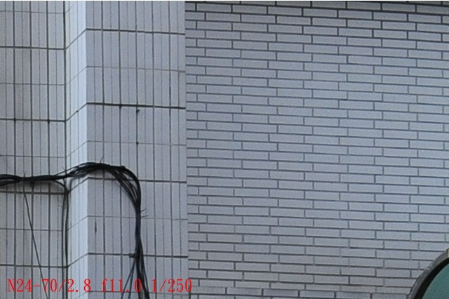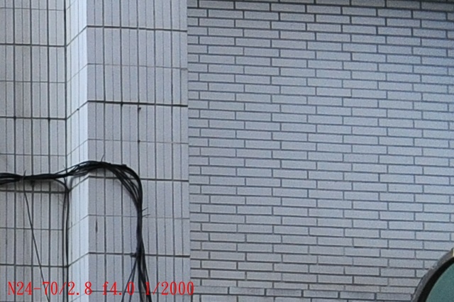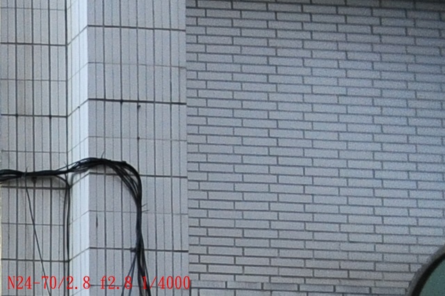 從第一組光圈全開的測試就可以發現24-70的24mm端比定焦24mm還要不廣,網路上關於24-70的24mm端有灌水之嫌的說法又再一次得到印證!