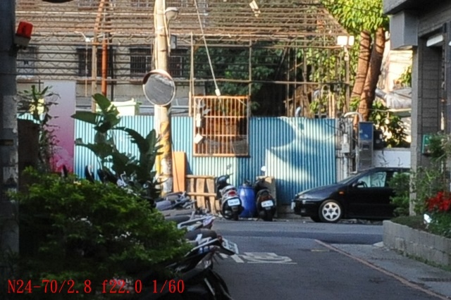 其他兩者的畫質,說實在話,如果沒有標上鏡頭資訊,我還真分不出哪張照片是哪支鏡頭拍的,若嚴格要挑,那就是邊緣部分24-70勝出!不過變形控制是定焦的24mm比較好!