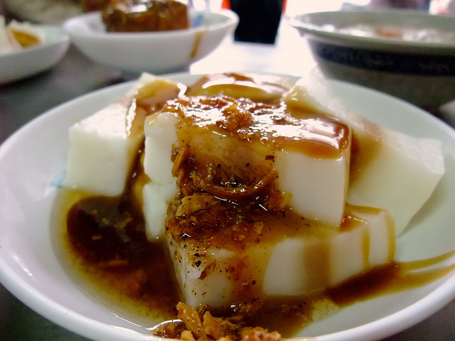 而就粿本身來說,蕭記水份較少,質地Q韌而有彈性,黃記的較水,質地軟嫩。