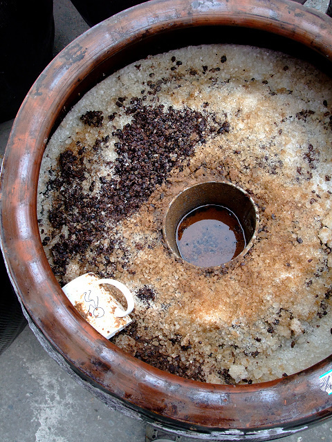 美少女還特別打開一缸給我們觀看,這就是道地的黑豆釀造醬油,只用了黑豆、麴與粗鹽,不添加其他人工化合物!