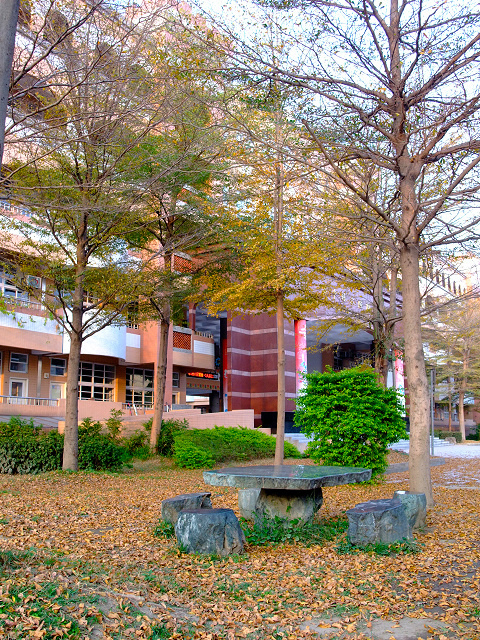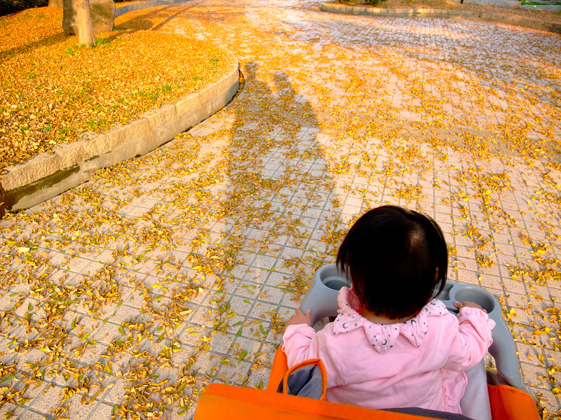 小葉欖仁樹下鋪滿了黃色落葉,蕭瑟的景象挺美的...