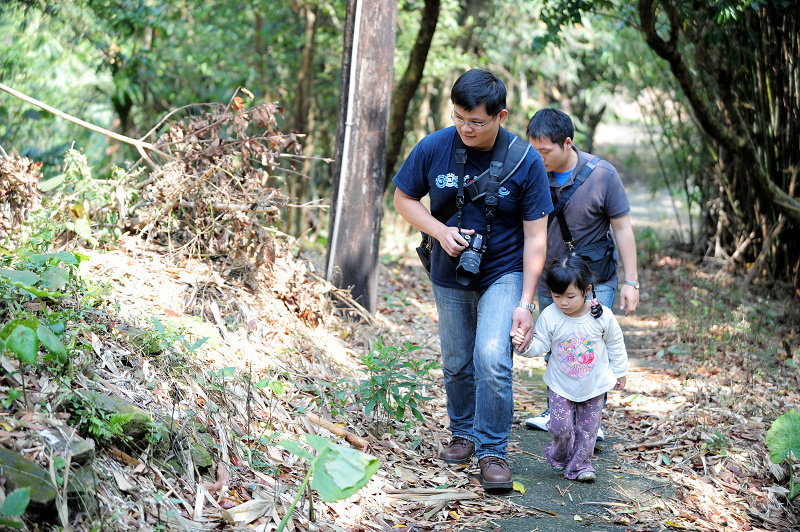 #2 連長帶著V妹和麥克跟著我一起爬登山步道,不過先前的幾日大雨讓路面十分濕滑,有綠色青苔的地方要特別小心,所以我們走沒多久就折返,另尋景點拍照...