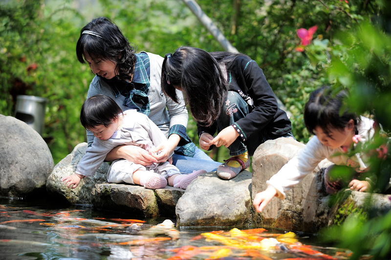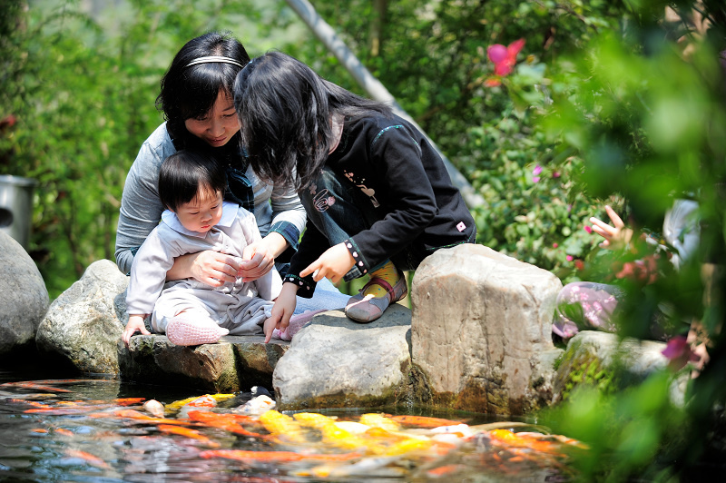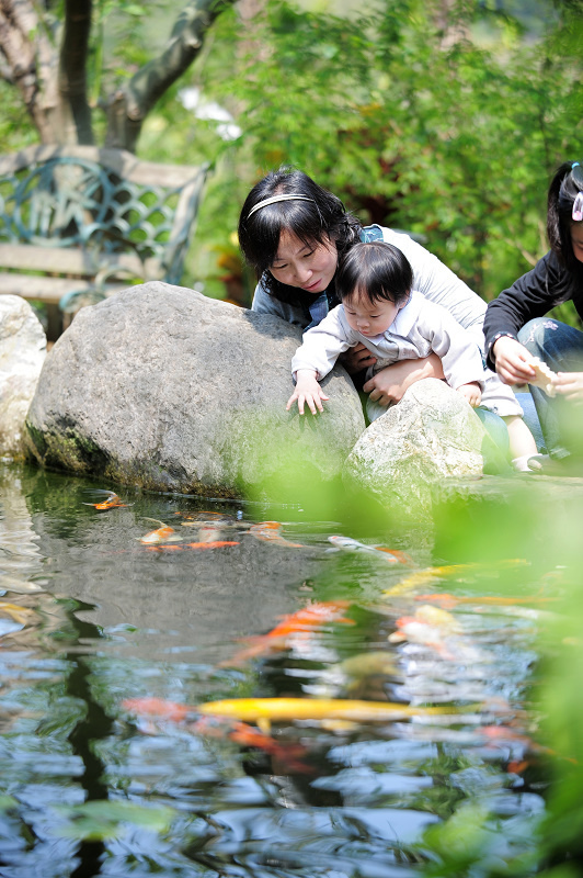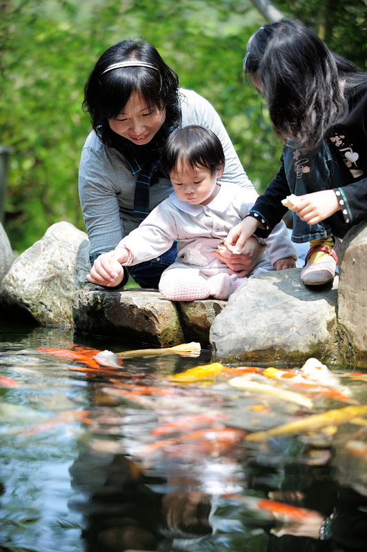 小朋友們玩餵魚玩到不可開交,一直玩到餐廳來叫開飯才停止!