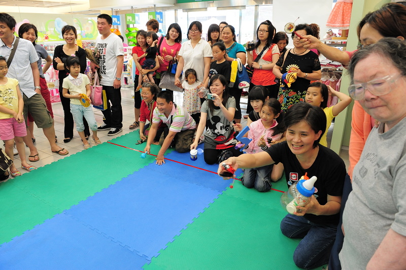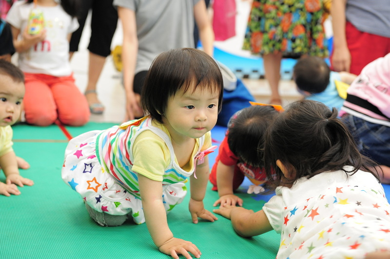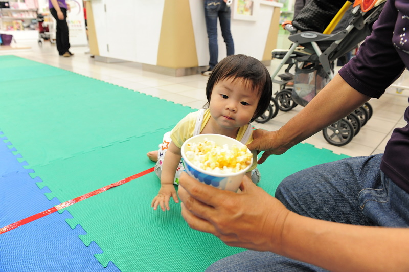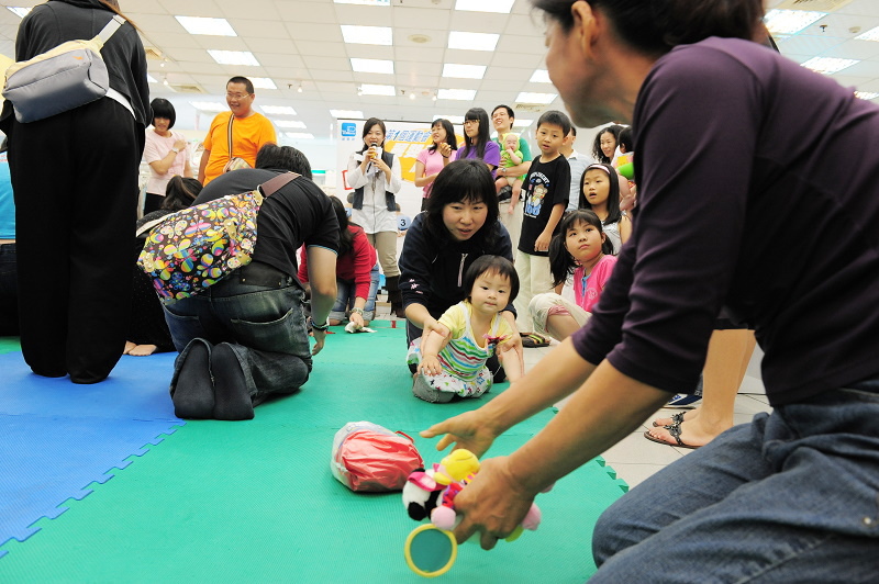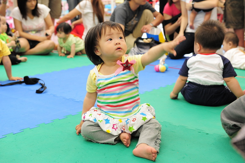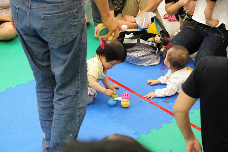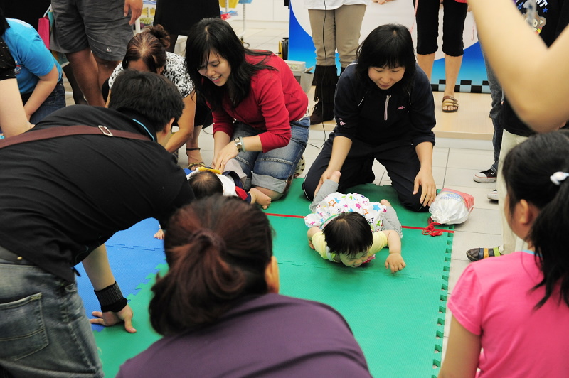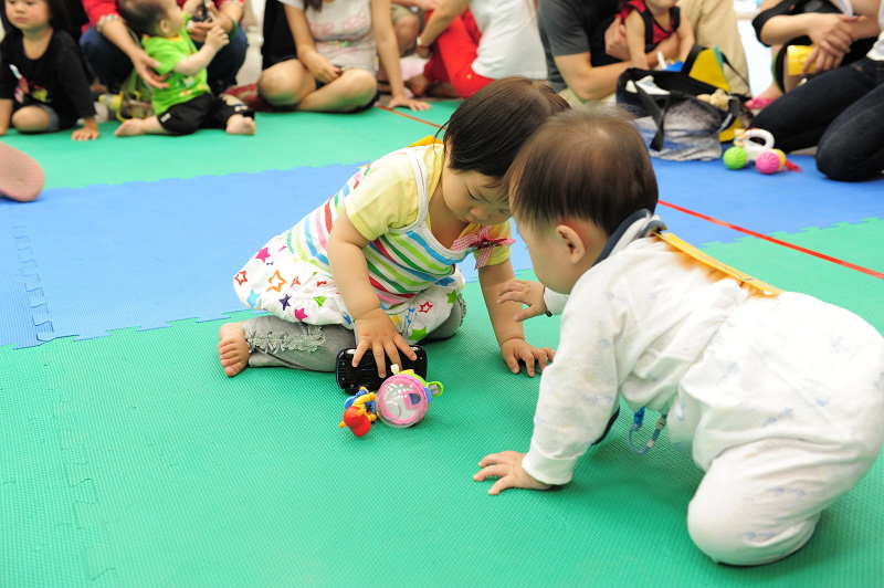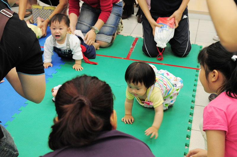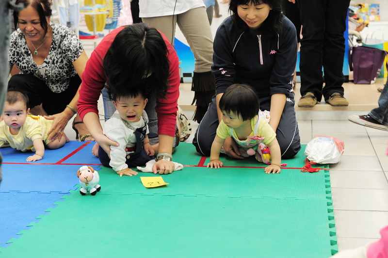 今天2:00的場次共21個小Baby報名,各家都拿出秘密武器,大多是有聲音的鈴鼓或會跑的小玩具...