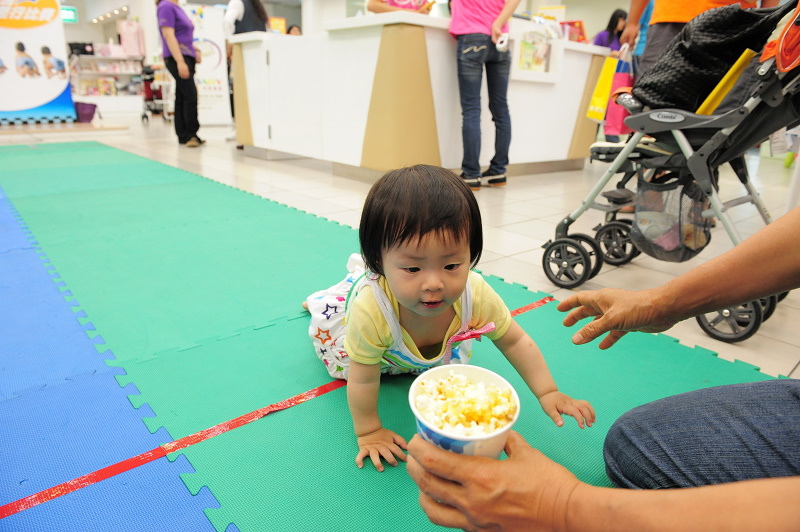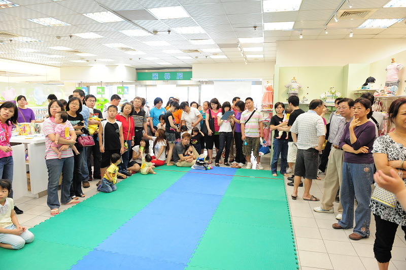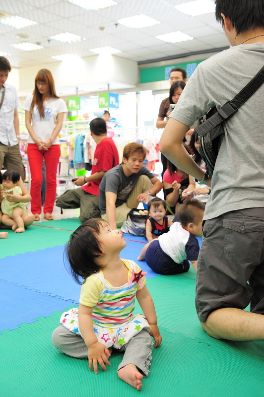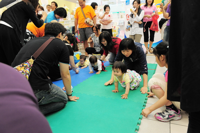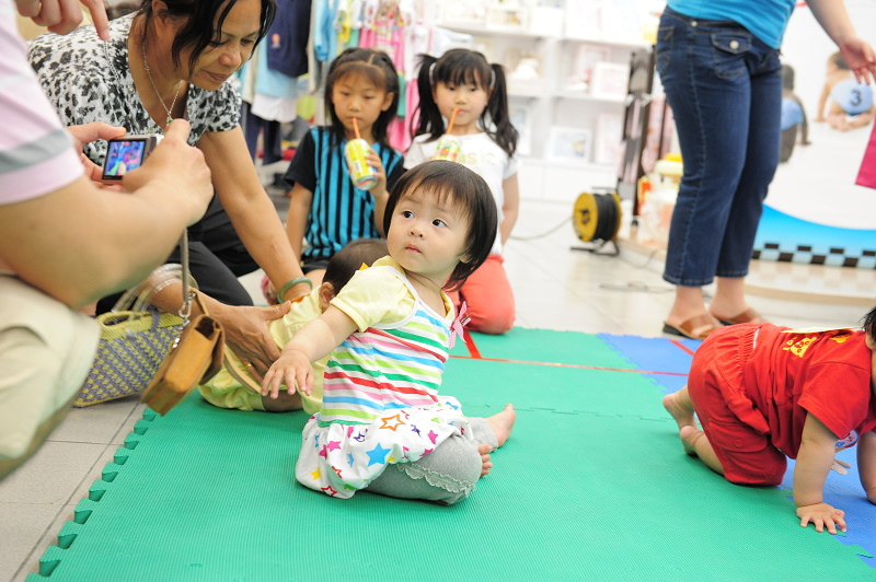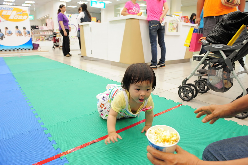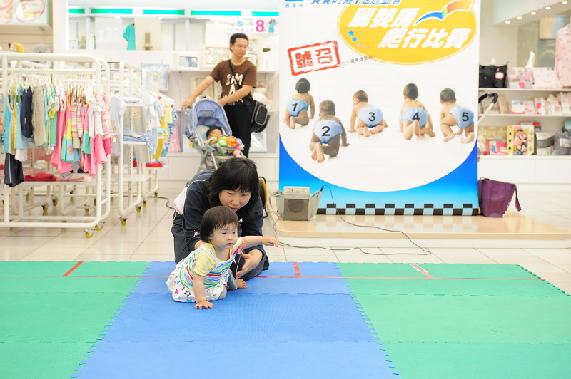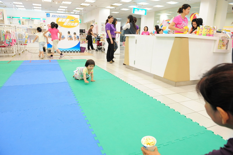 「咻~~~」人潮一下子就退去,整間麗嬰房除了店員之外空蕩蕩的...我們乾脆讓林家女孩繼續爬一下...