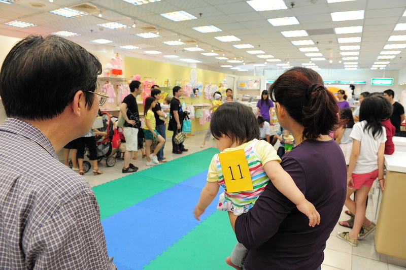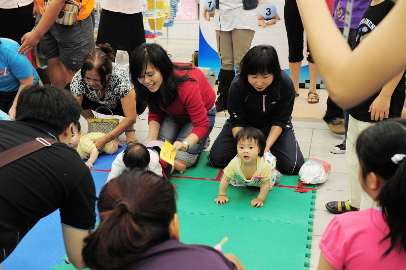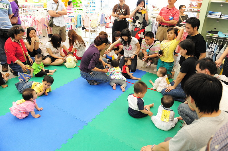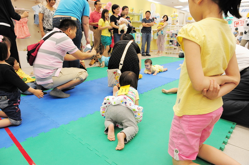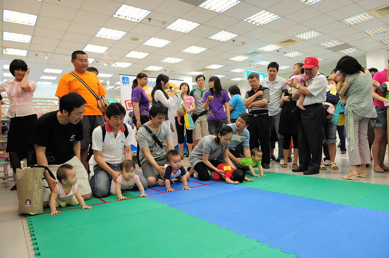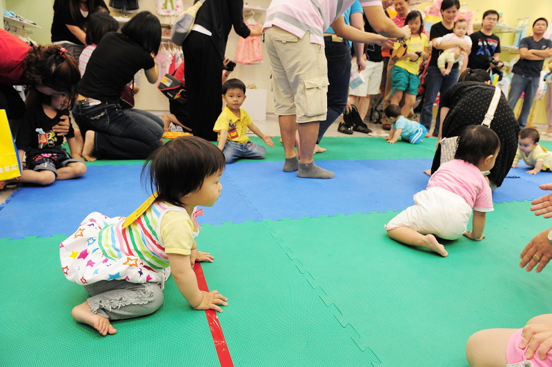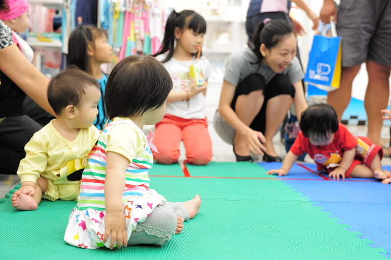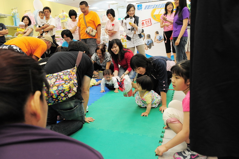 「咻~~~」人潮一下子就退去,整間麗嬰房除了店員之外空蕩蕩的...我們乾脆讓林家女孩繼續爬一下...