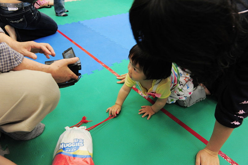 哇!好棒!林家女孩果然追著尿布袋迅速抵達終點,是第二名唷!