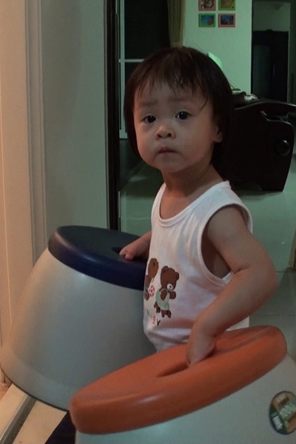 我們大人習慣會坐在小椅子上幫她洗澡,於是一到了洗澡的時間,林家女孩就知道要先去搬椅子...