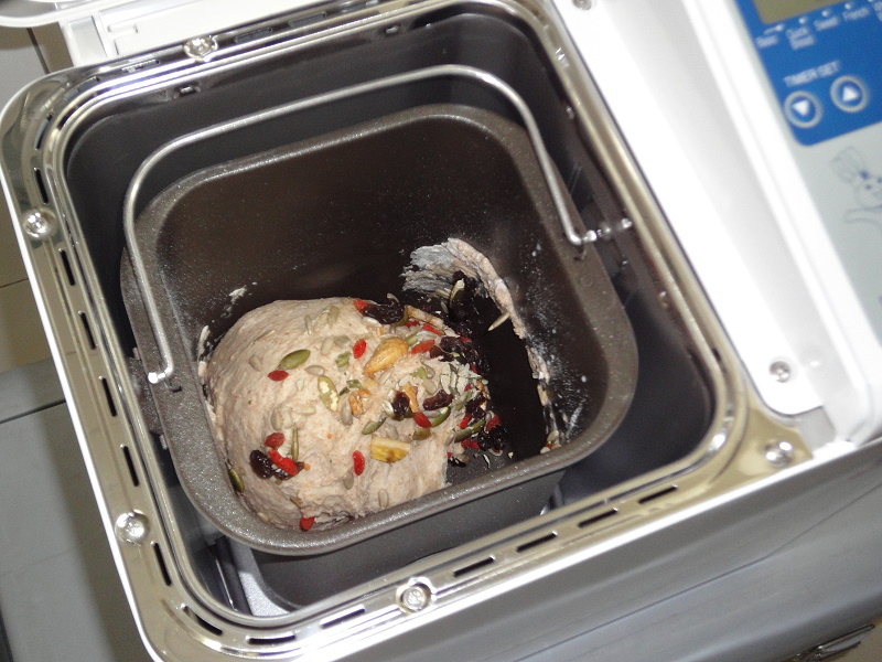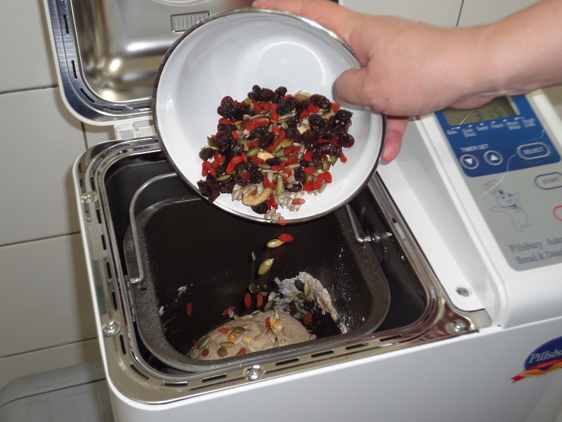 #6 待揉麵20分鐘後,倒入綜合堅果+葡萄乾...