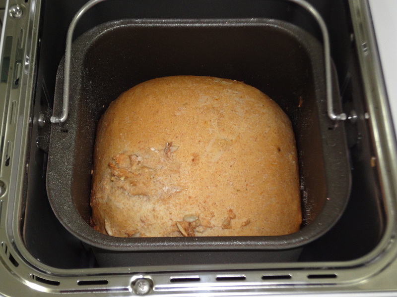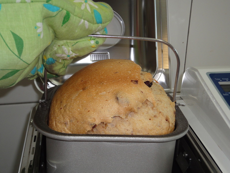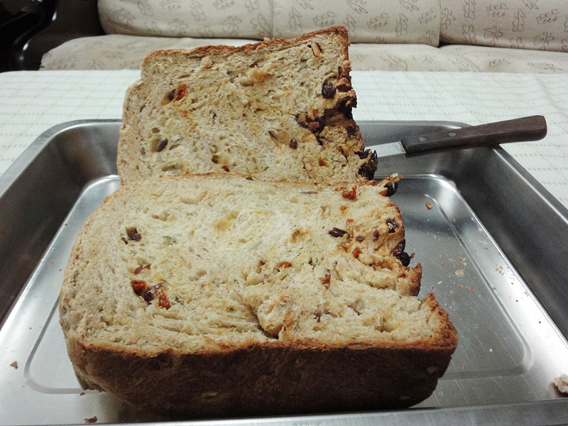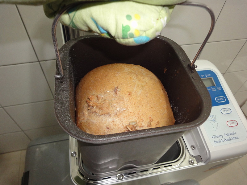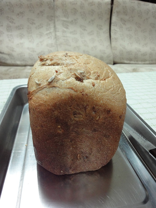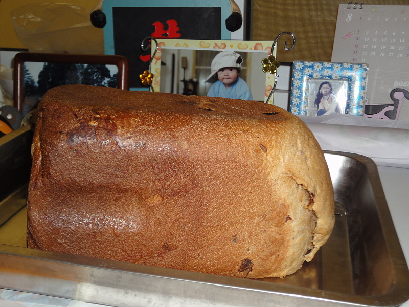 前一天晚上睡覺前就把所有的材料丟進麵包機,設定好時間,今天一大早七點整熱騰騰的麵包準時出爐...