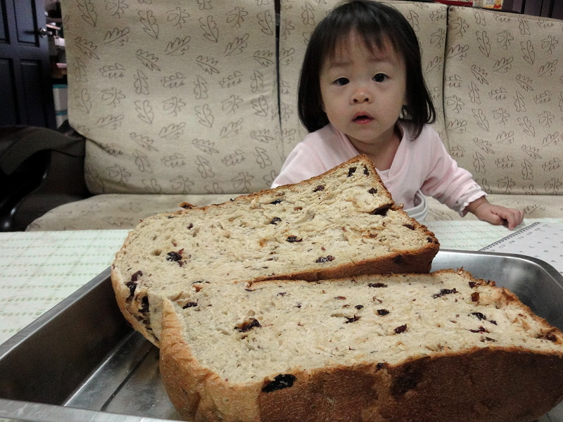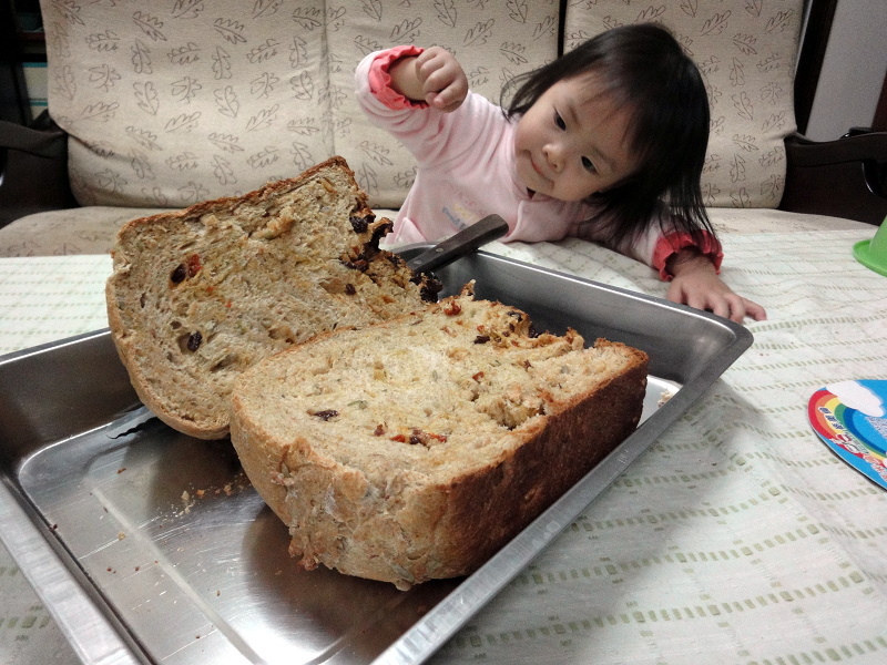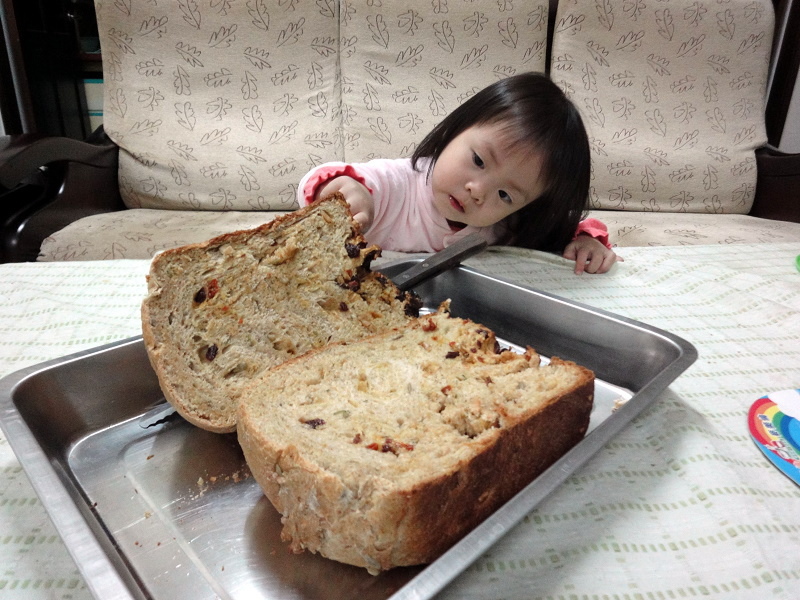 #13 原來她是想挖麵包上的葡萄乾啦!這葡萄乾烘焙過後軟軟的、燒燒的,而且甜度更甜了!難怪小朋友愛不釋手,就算燙手燙口還是要吃!