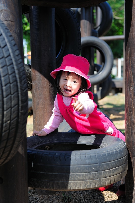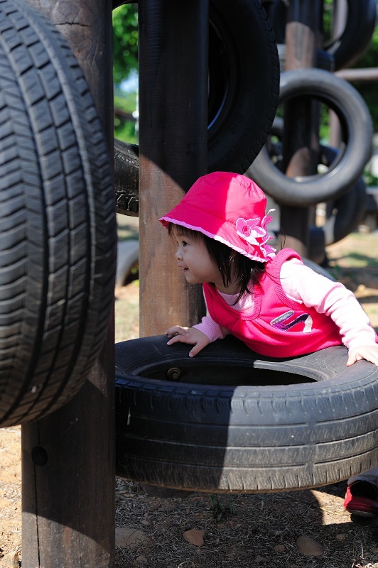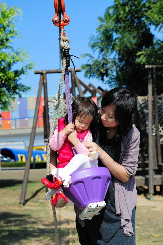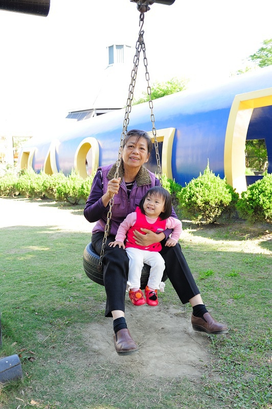 #28 這個設施是大孩子才有辦法玩的,可是林家女孩又害怕又想玩,我們只好讓她坐一下下,意思到了就好...