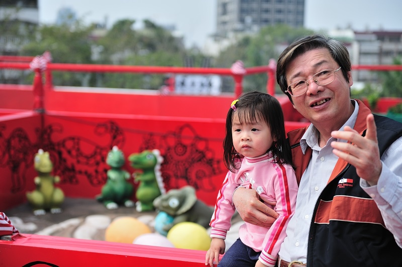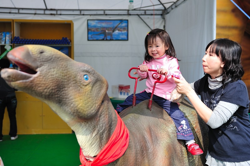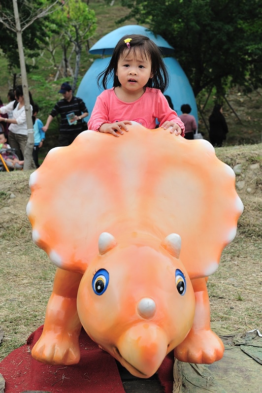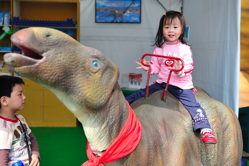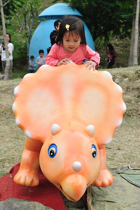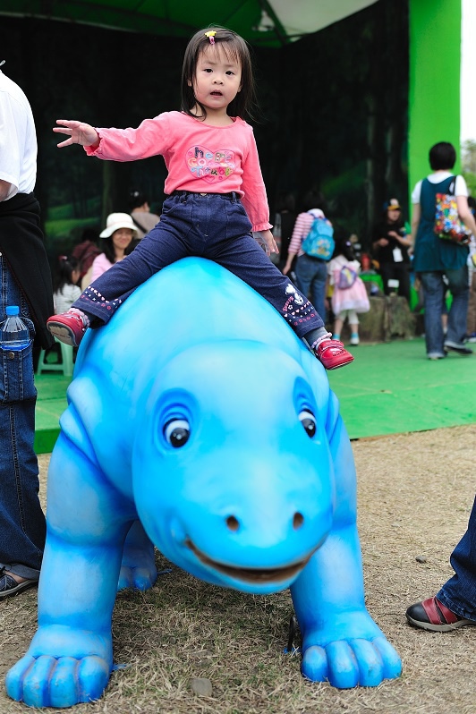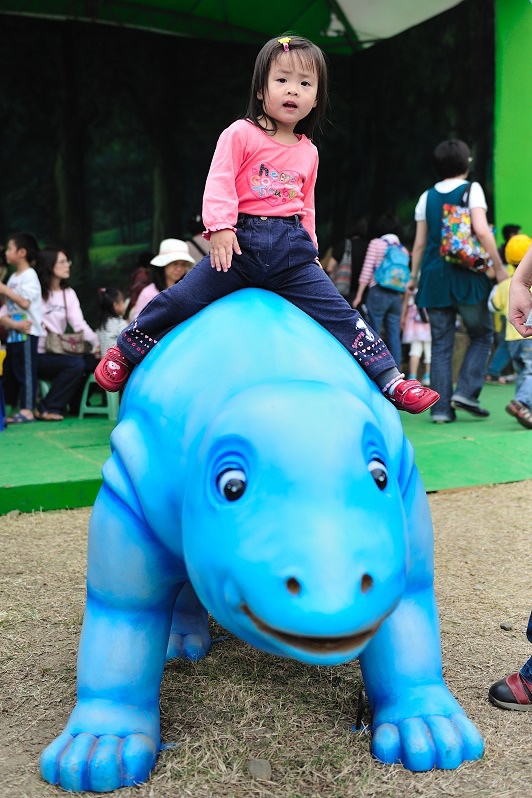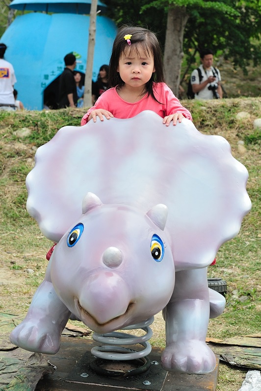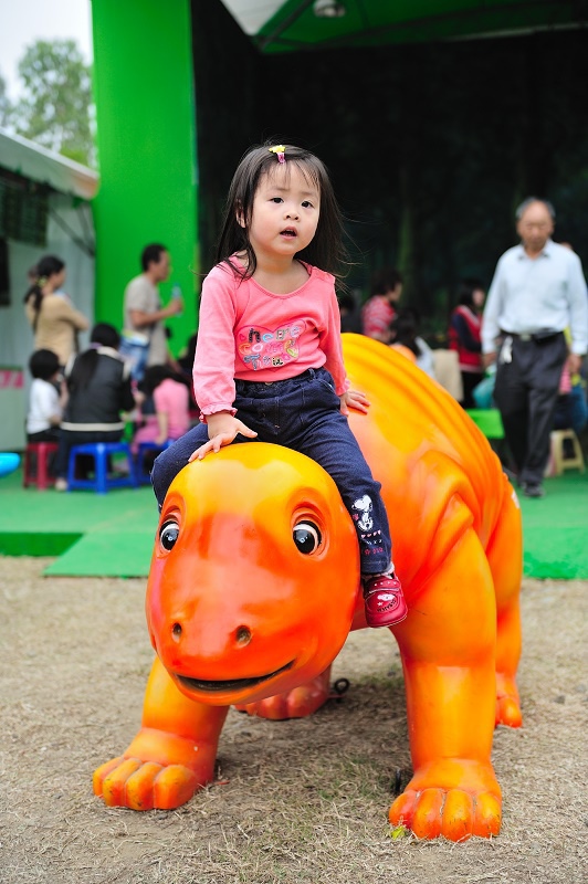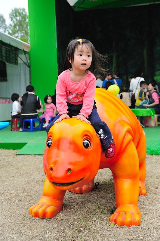 原來只是為了讓孩子坐一下這個恐龍車車(沒有開動),然後拍一下照......Orz