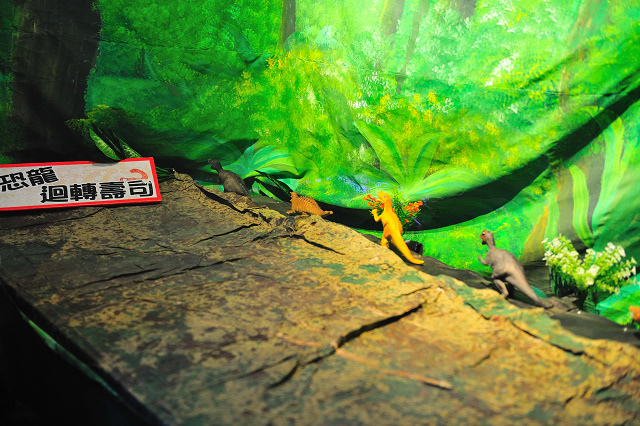 這座大恐龍的內部有些展覽,主要是闡述恐龍滅絕的五大因素說...