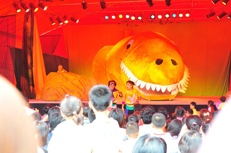 大恐龍出現在舞台上的這一幕非常震撼!台下的大小朋友們尖叫連連!