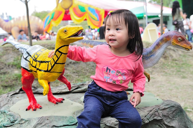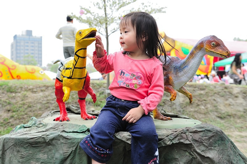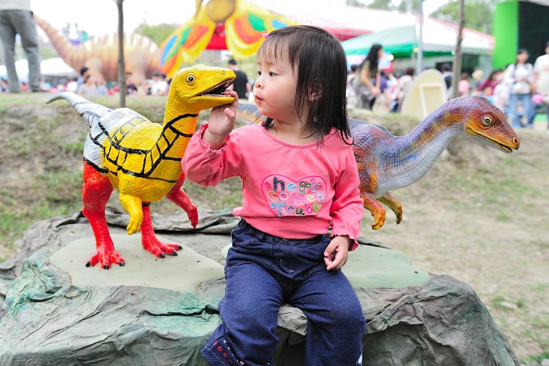 讓林家姊姊最興奮的是這些恐龍大人偶,只要碰到這些人偶,她就笑得超開心!