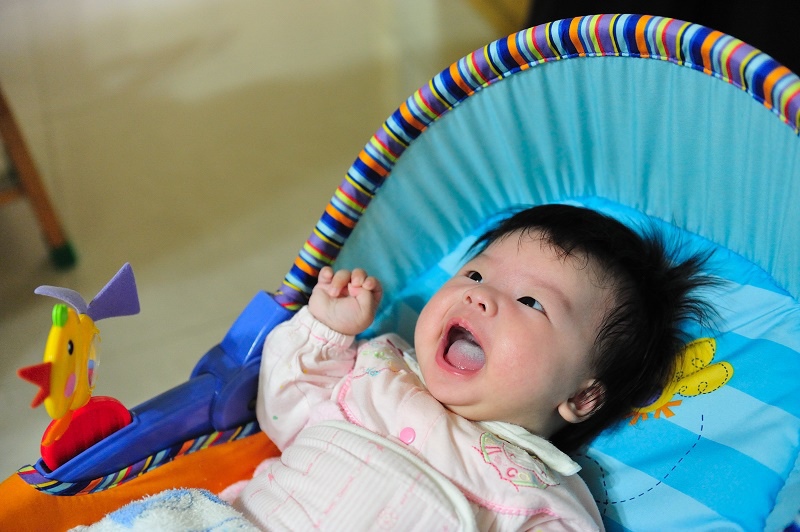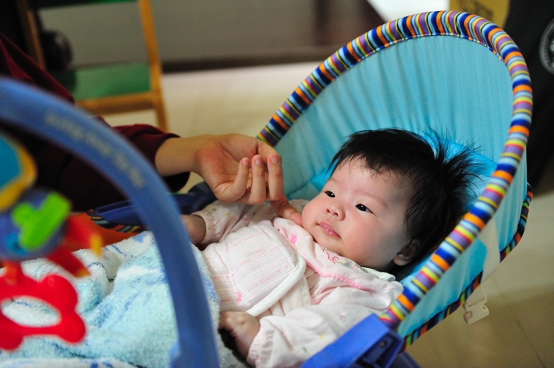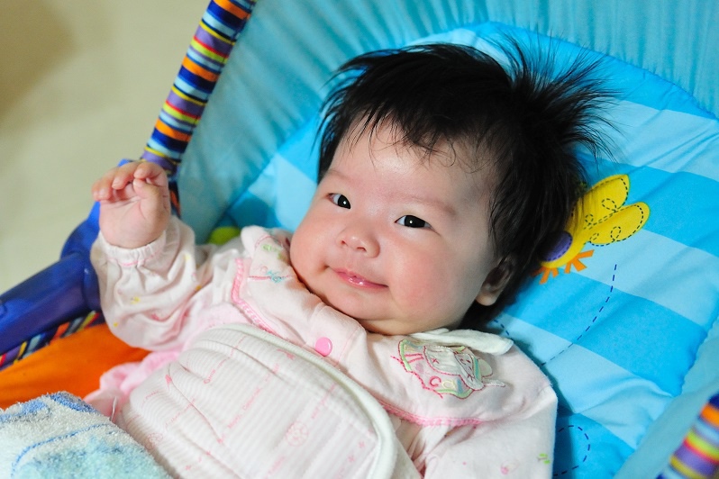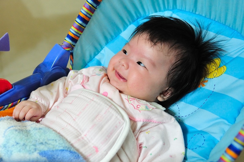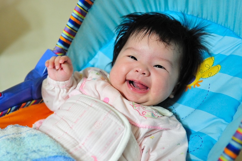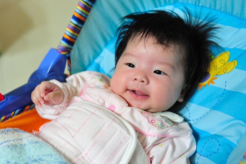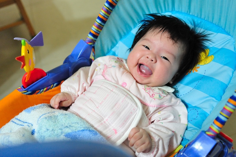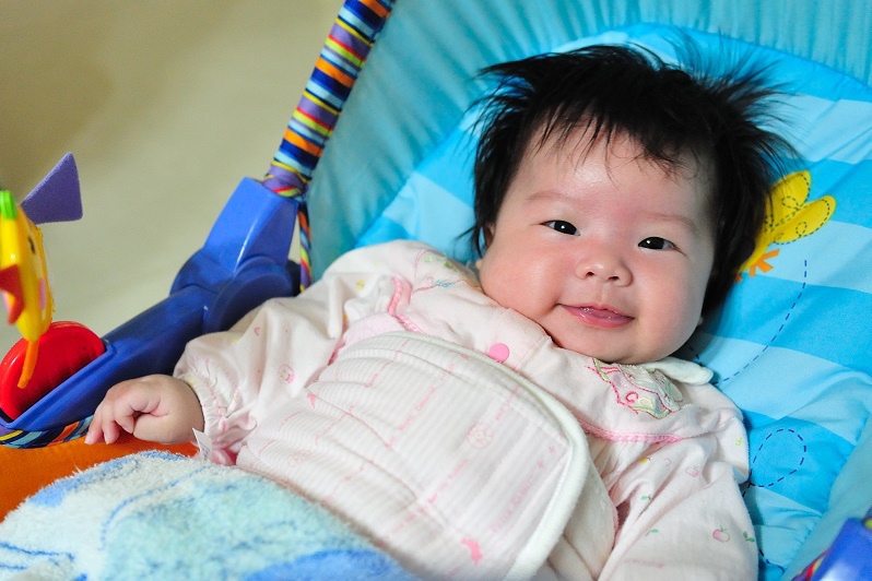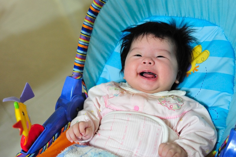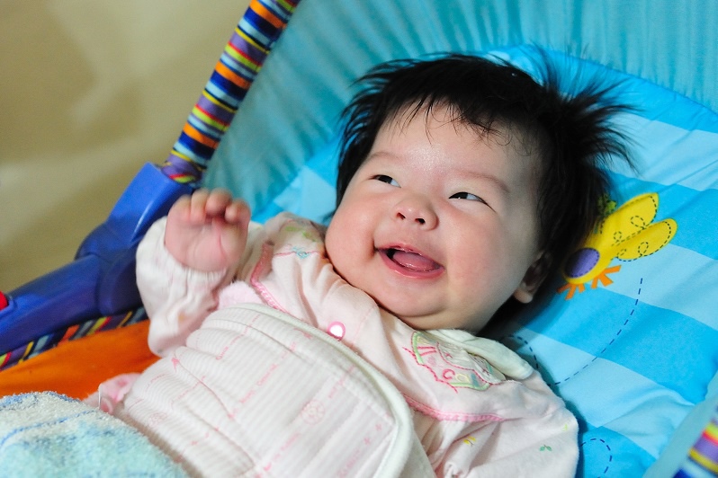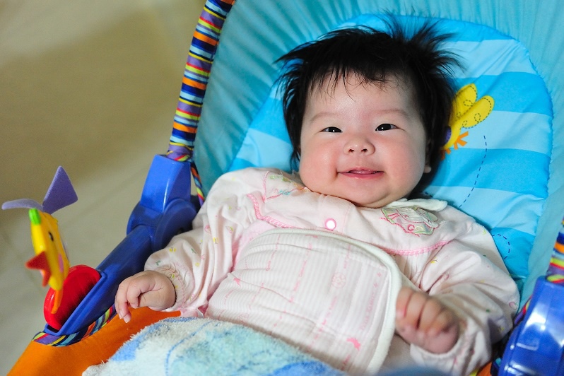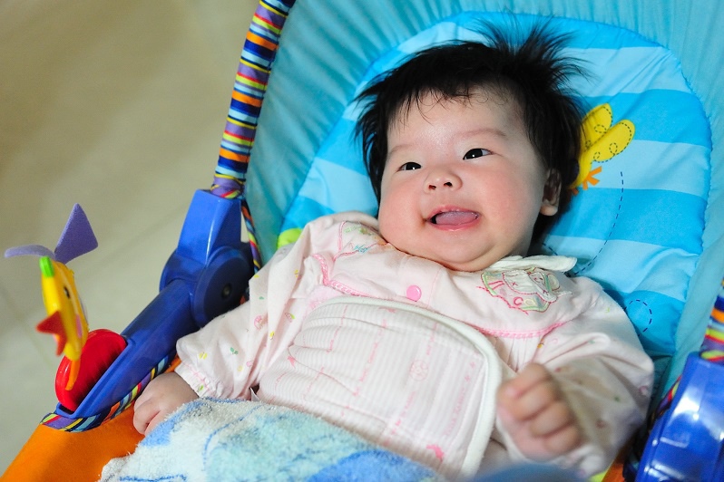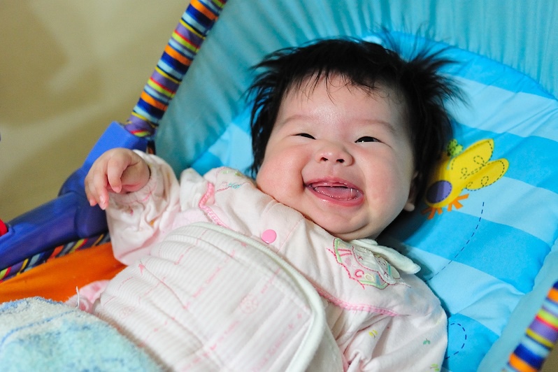 林家妹妹很愛笑,只要大人稍微逗弄她一下,她就會笑得很開心,而且笑容誇張!
