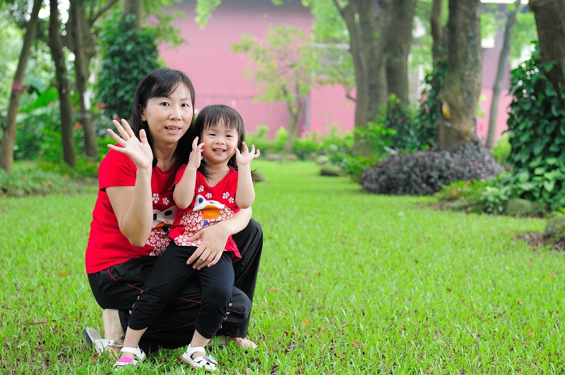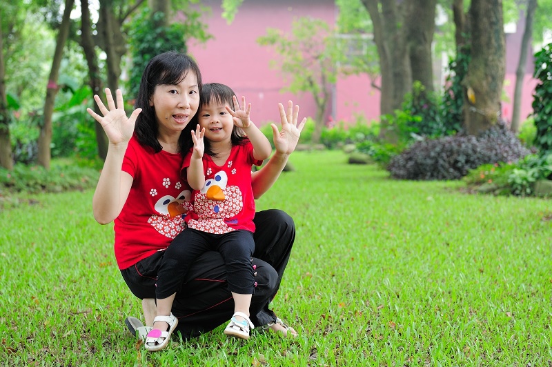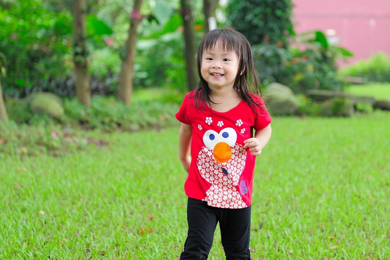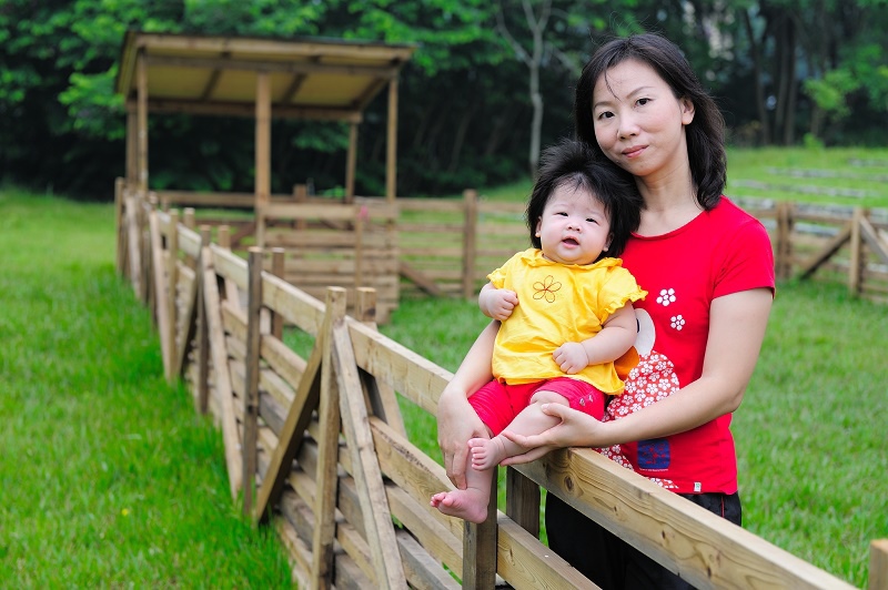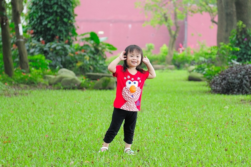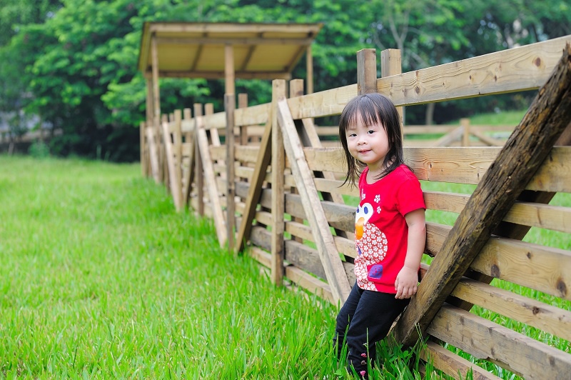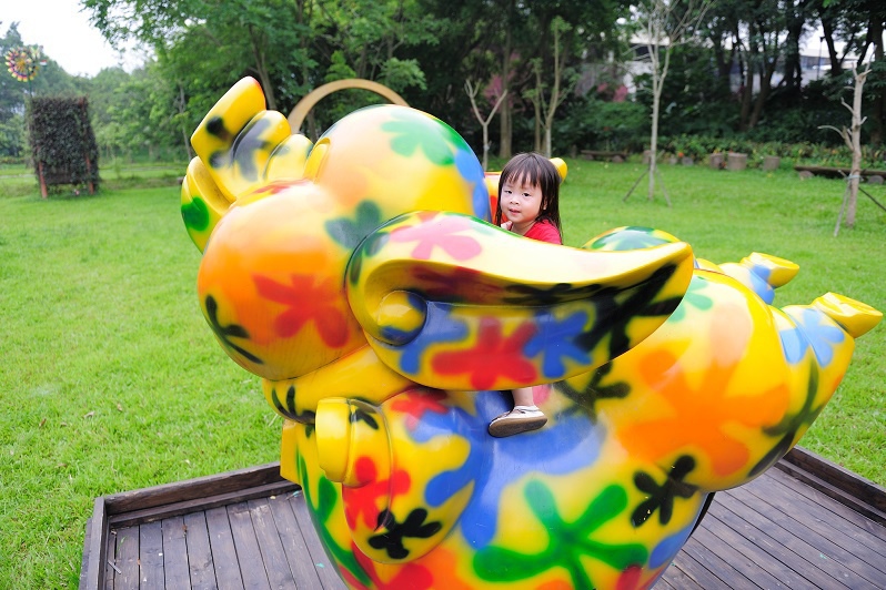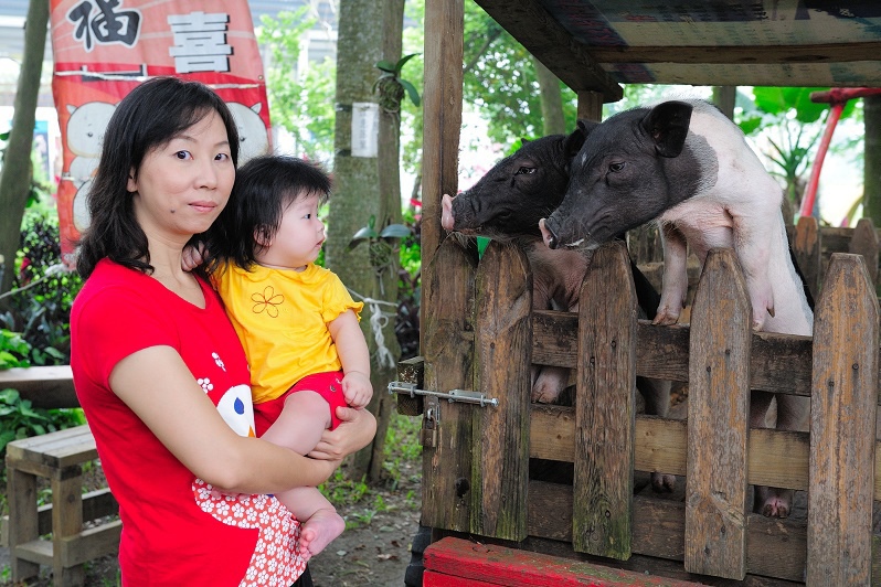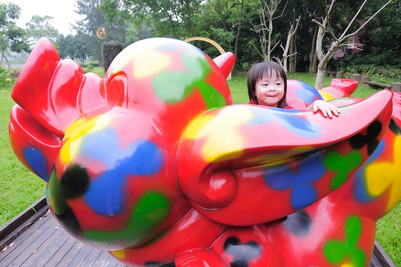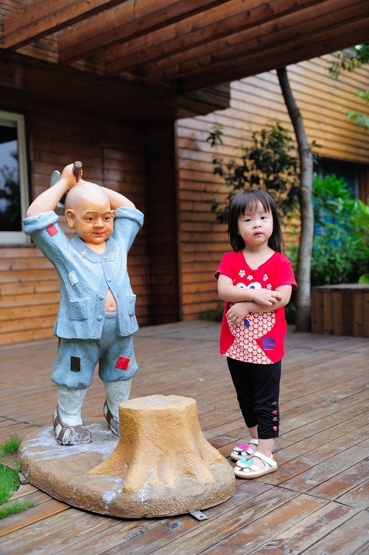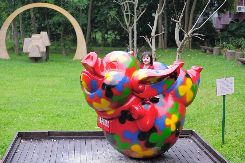 #10 南投豬樂園中有不少小沙彌的塑像,林家姊姊很感興趣,一直跑過去給它東摸摸西搓搓...