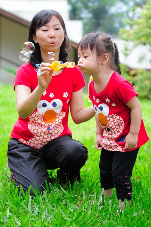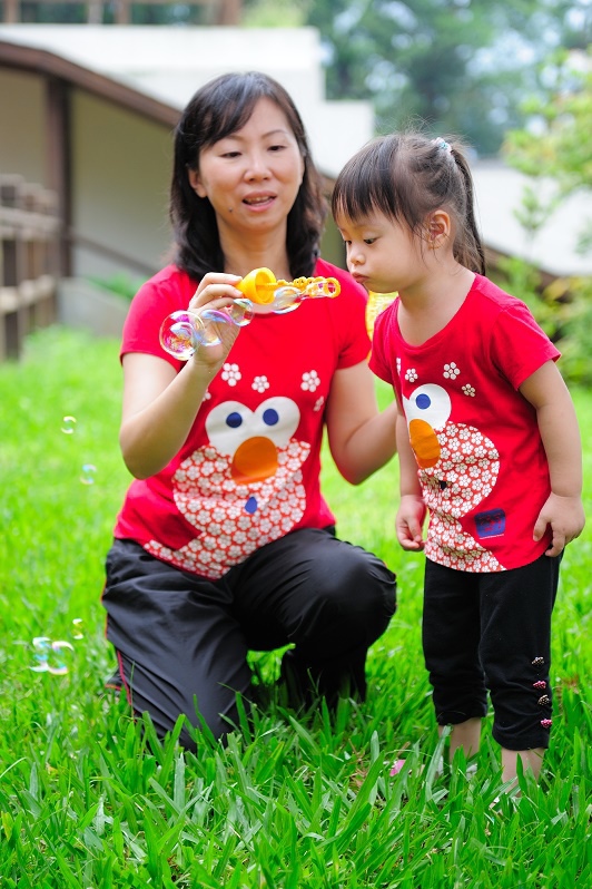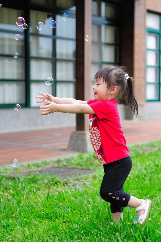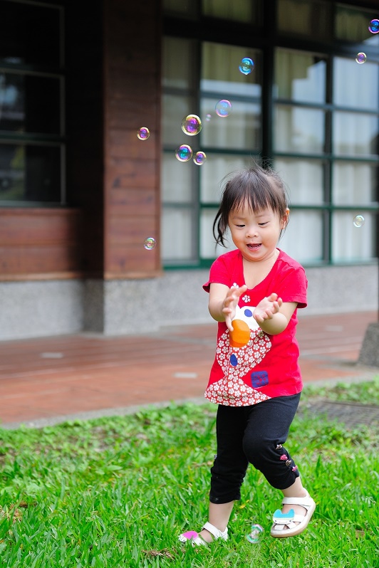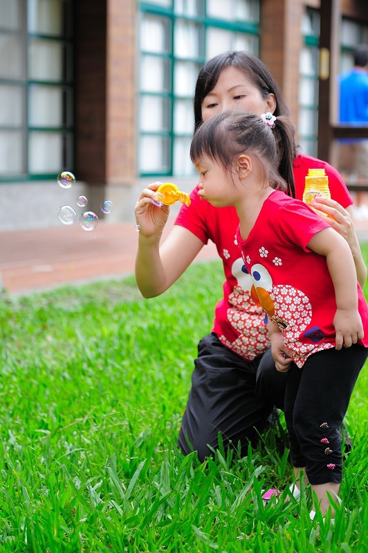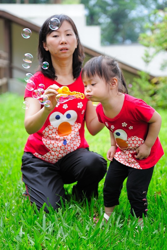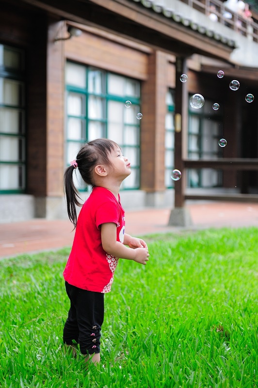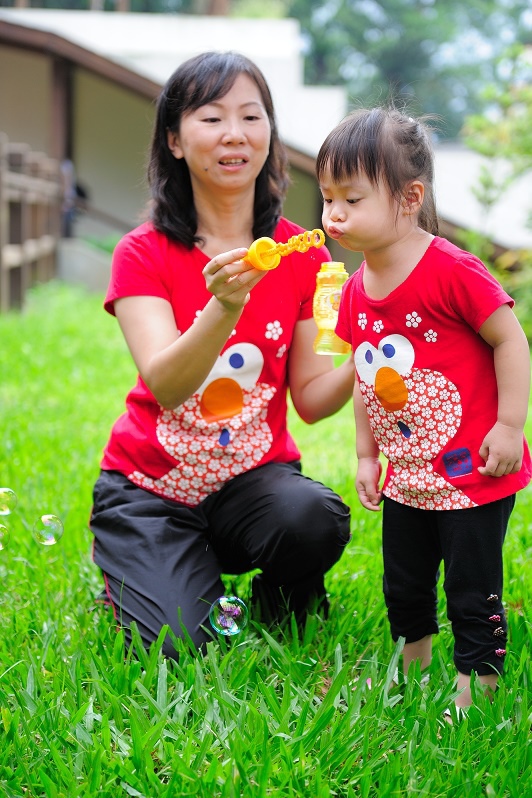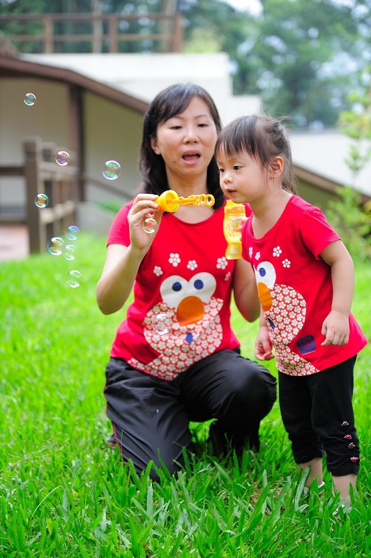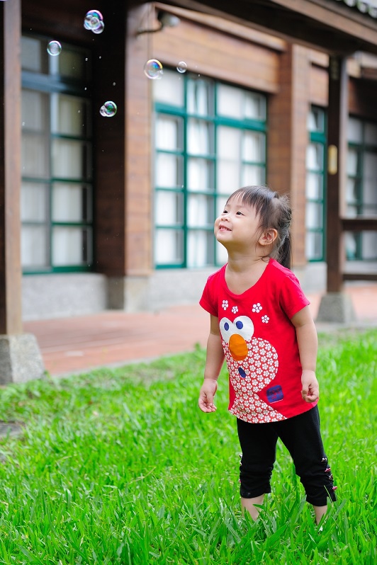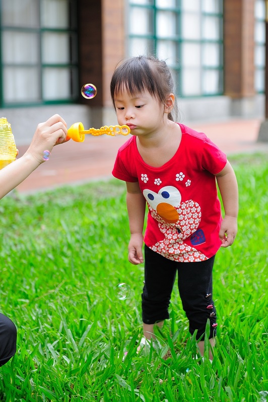 #22 我們每一次都有帶吹泡泡出來(其實是放在娃娃推車的置物袋沒有拿下來過...),不過不是每個點都會拿出來給林家姊姊玩,這次是看到內湖國小內有一小塊草地非常漂亮,想說應該跟吹泡泡很合!
