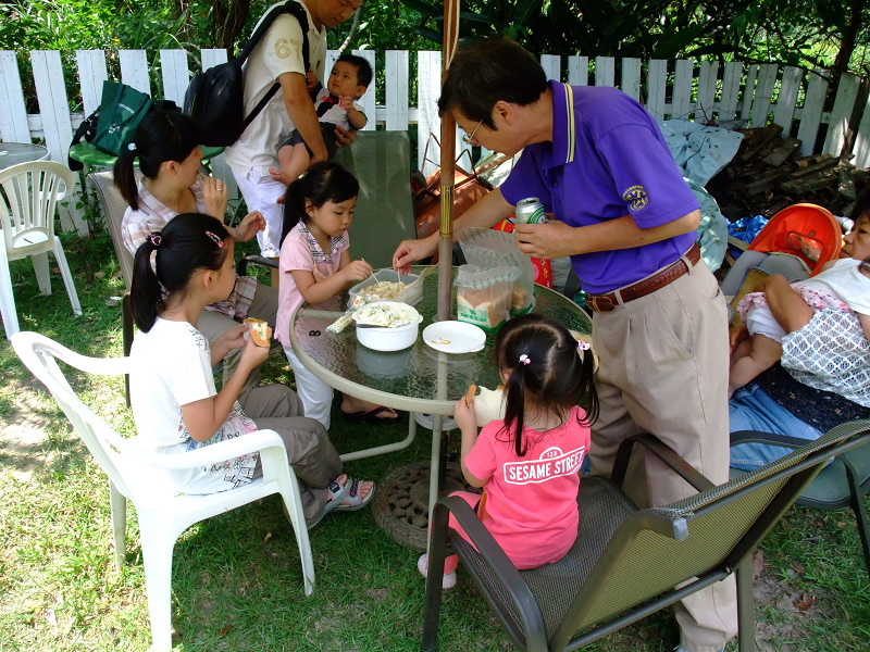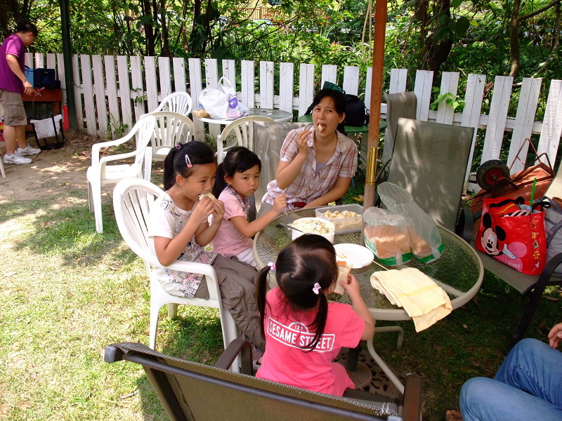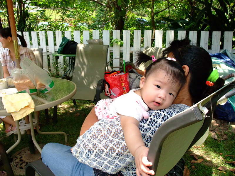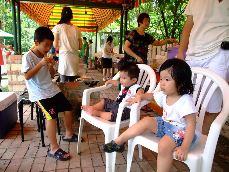 最近台灣實在太熱!熱!熱了!我們的遮陽傘座位位置原本是在草地上,可是被曬到受不了,趕緊移到龍眼樹蔭下和連長一家併桌,頓時感覺好多了!(不過一天下來還是有幾個人中暑了......Orz)