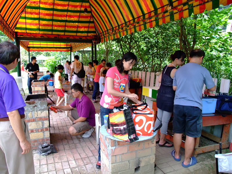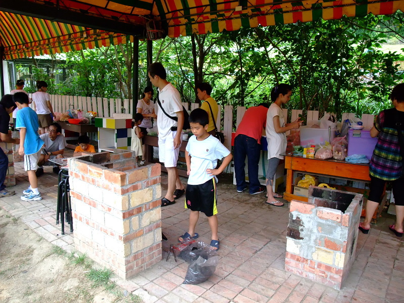 烤肉區一個大人人頭100元,小孩子50元,還附木炭、烤肉架、桶子雞桶(是的,只有桶,雞請自備)、一包地瓜,還可以進入農莊內遊玩,的確是三五好友、闔家出遊的好所在!