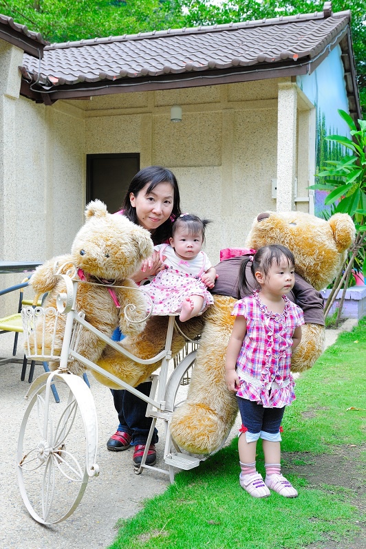 (林家姊姊想要自己跟大熊熊拍照,又開始「張」了...)