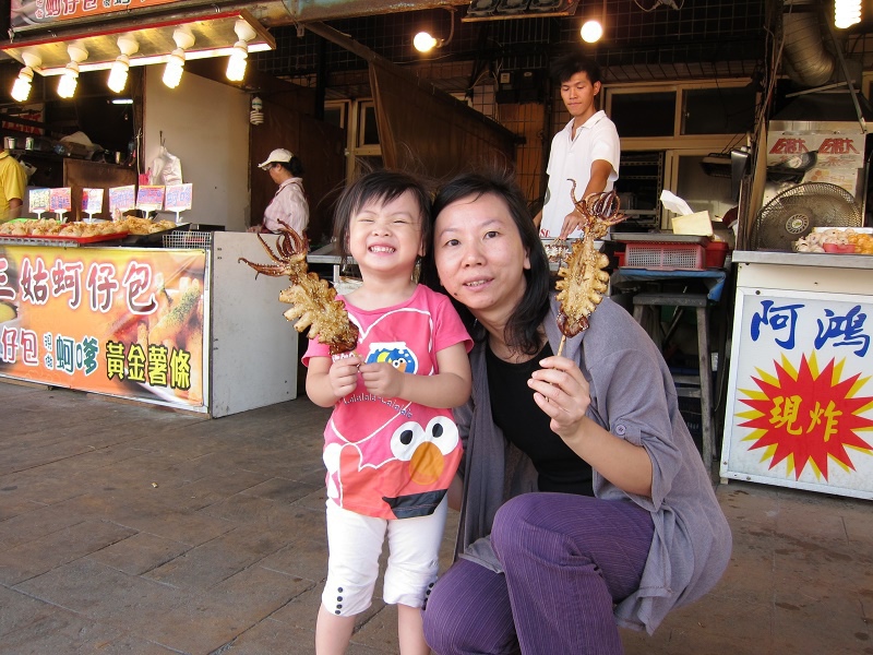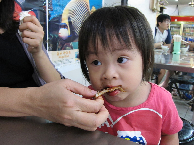 林家姊姊還不太曉得烤魷魚的美味,只是看到店家用木炭烤魷魚她就很高興,口水莫名其妙地一直流下來~