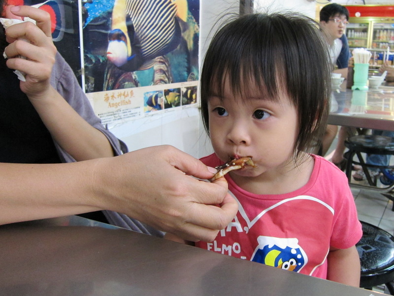我們在觀光漁港內找個海鮮小吃店坐下來,點幾樣小東西,開始享用剛剛買的烤魷魚...