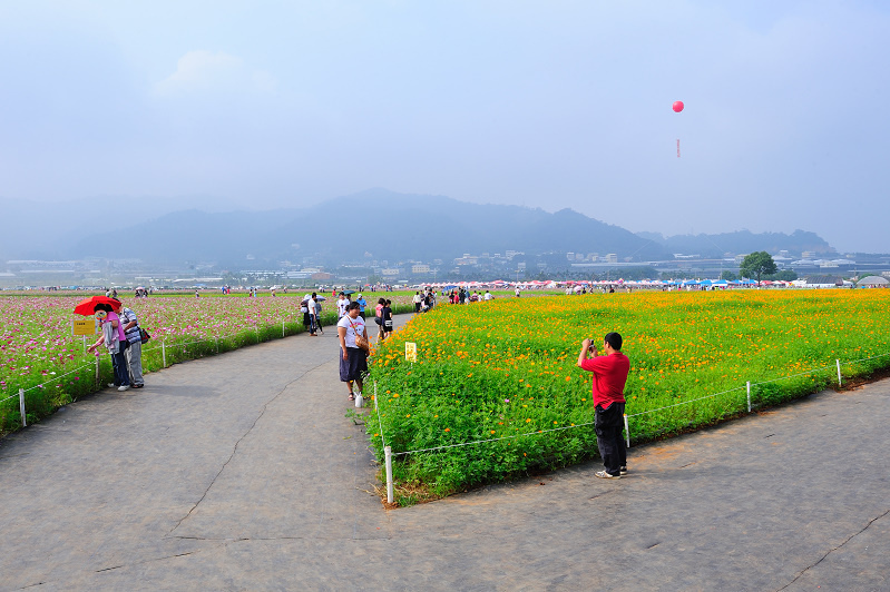 新社花海當天的遊客從一大早就開始大量湧現...等我們中午十二點左右回程時,要進新社的車輛已經往回塞到大坑的東山樂園...