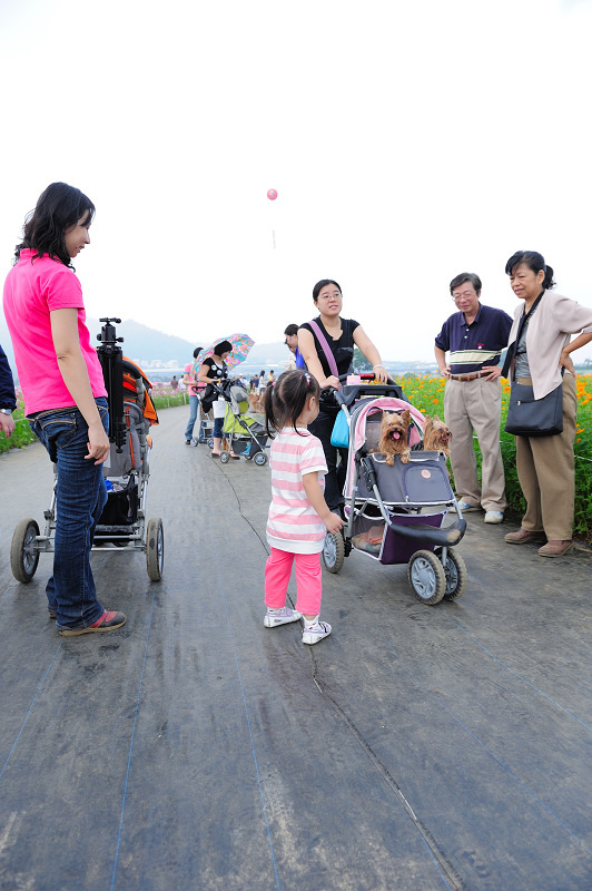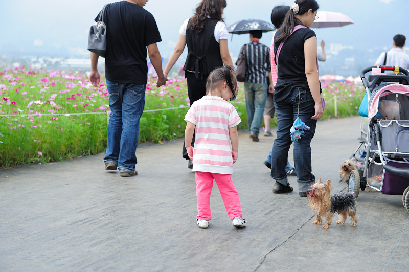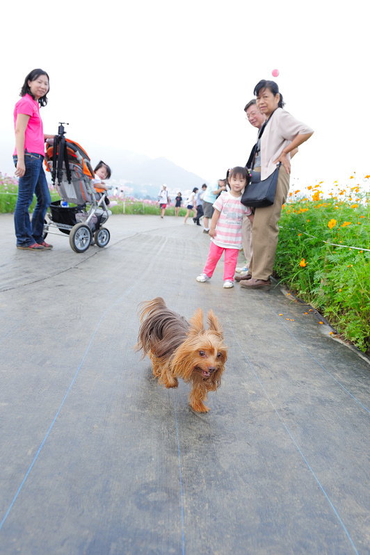#80 就在花海中央,我們巧遇了一個寵物家族網路聚會,都是同一個品種的小型犬...