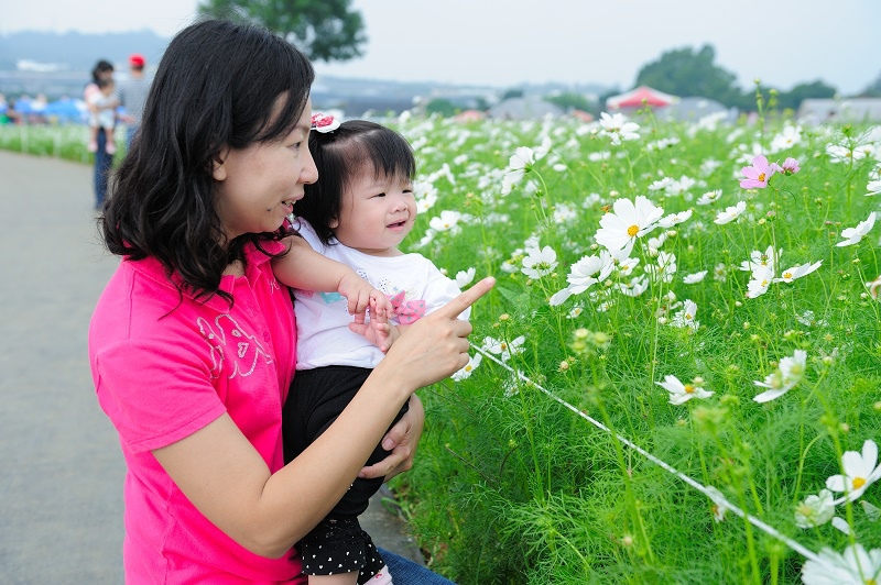 當我們家迅速經過一字長蛇,動彈不得的對向車陣時,我們萬分慶幸出門得早!所以...要來新社花海的朋友們真的要早一點啊~~~