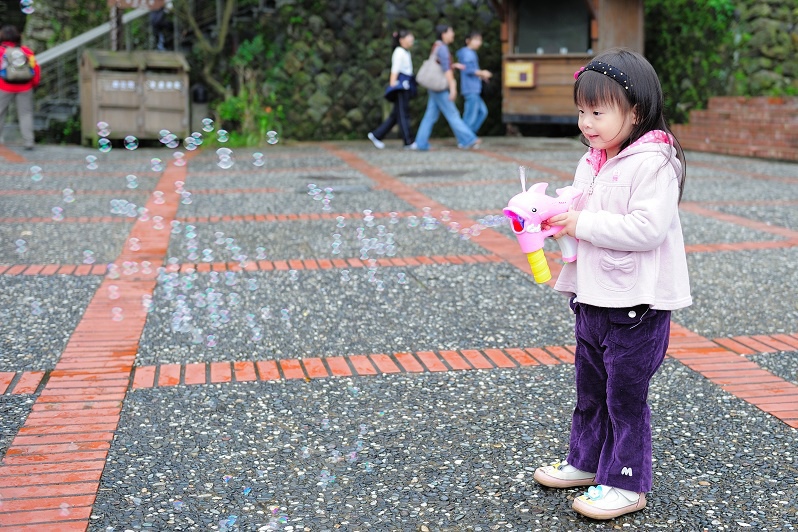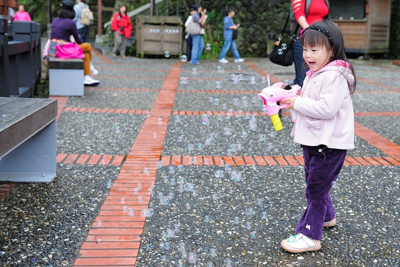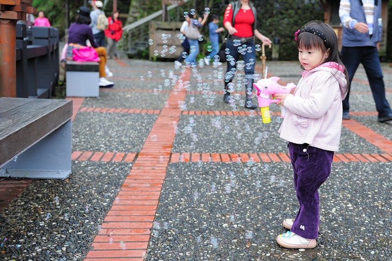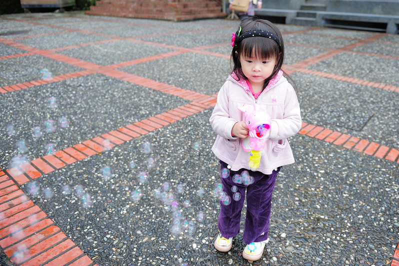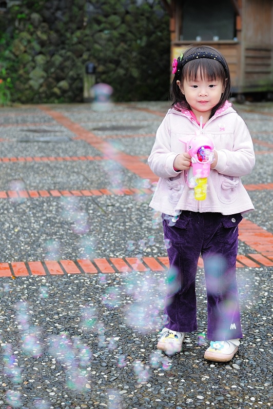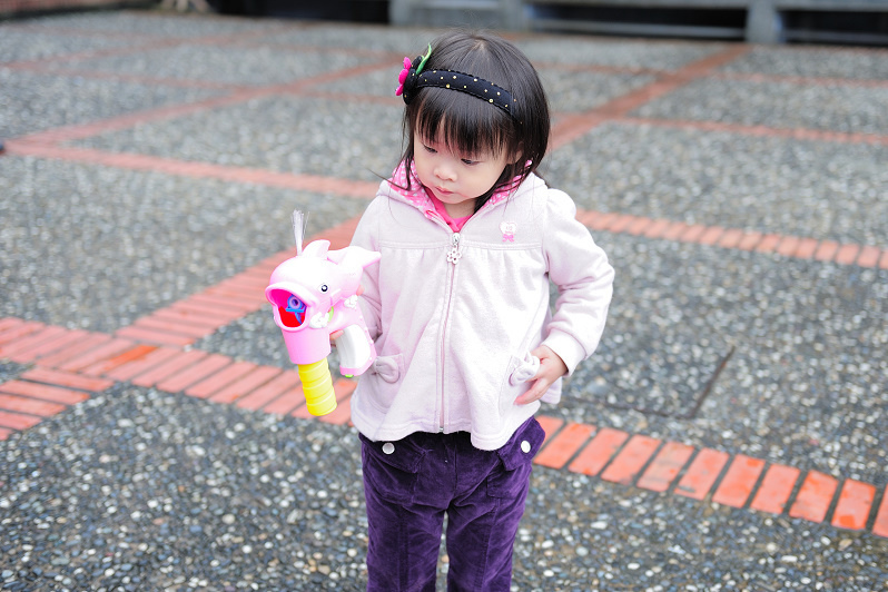 #28 林家姊姊一直叨唸著她的泡泡槍,我們拗不過她,就讓她拿出來玩了...