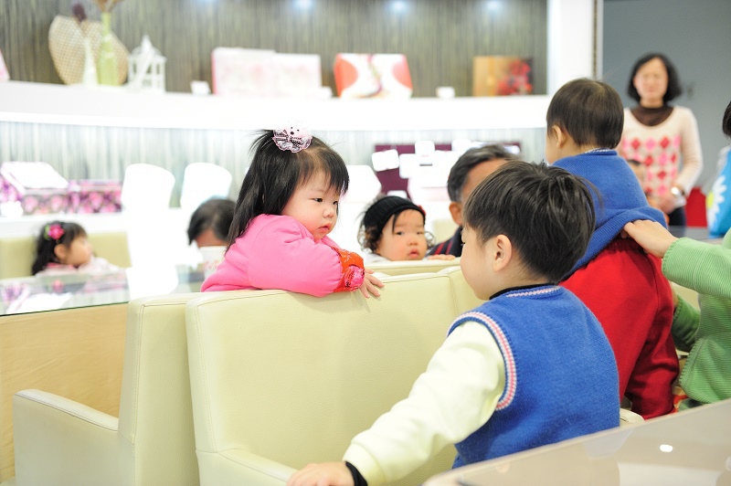 早上不到9:30我們家就到郭元益糕餅博物館台中館報到,比我們早到的已有二個家庭,連林家妹妹在內的幾小孩先開個同學會囉,林家妹妹是其中最大的,身高及動作發展也是最好的唷~